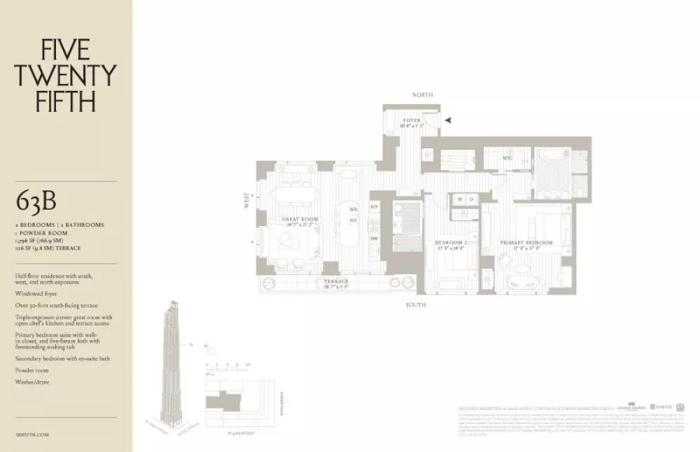 Exclusive Marketing and Sales Agent: Corcoran Sunshine Marketing Group. The complete terms are in an Offering Plan available from the Sponsor, 520 Owner 2 LLC, C/O Rabina Properties, LLC, 505 Fifth Avenue, 27th Floor, NY, NY 10017 under File No. CD 23-0148. Property Address: 520 Fifth Avenue, NY, NY 10036. Equal Housing Opportunity.