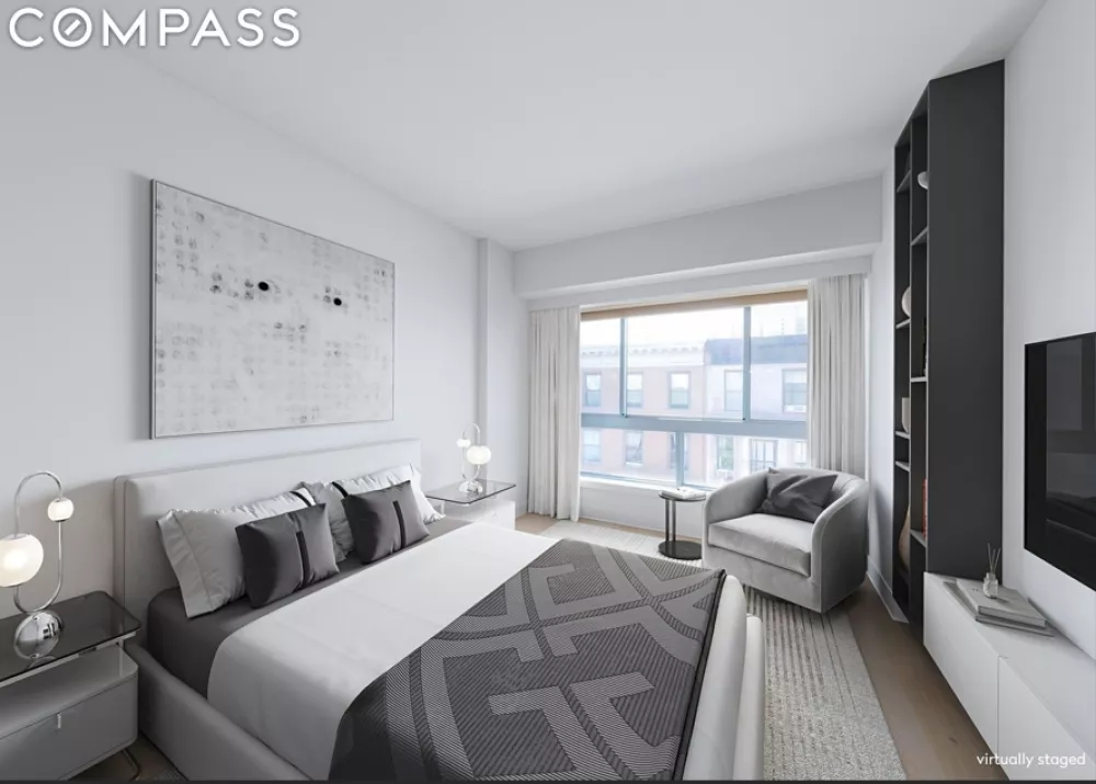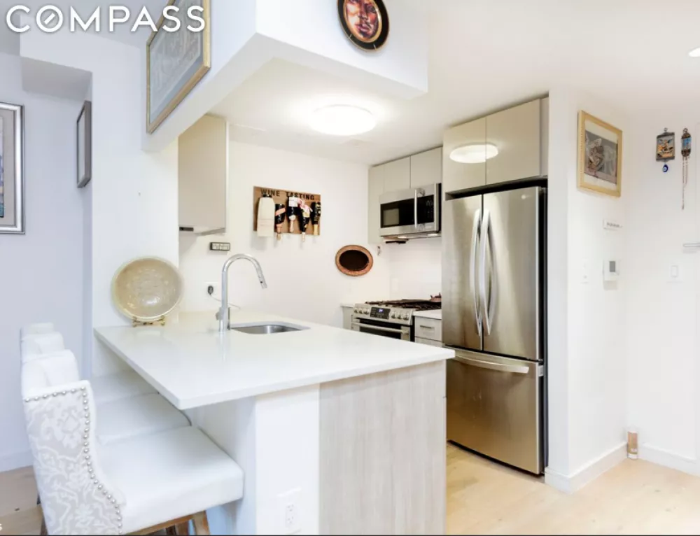 Amazing opportunity to own this lovely one bedroom at the Aurum Condominium. Built in 2015, no special touch was left out of this lovely apartment. The South facing, sun drenched apartment features generous rooms and an open chef's kitchen. Kitchen features double door LG refrigerator, a complete Electrolux Series stainless steel package with range, microwave & dishwasher as well under the cabinet LED lighting, backsplash of Daltile white glass tile and a breakfast bar with quartz counter-top. White oak, wide plank wood floors throughout the apartment. Custom remote control blinds will stay in both rooms. The bedroom can easily accommodate a queen size bed and has a generous custom closet. The bathroom is complete with Sand Natural glazed porcelain tile, Kohler soaking tub, Kohler commode and Satin Nickel Danze fixtures. A glass tub enclosure has been added. Enjoy central heat and AC, and a fully vented washer dryer in the hallway closet, along with amazing space. The Aurum Condominium residents enjoy a 24 Hour Attended Lobby, lounge with kitchen for entertaining, a fitness center, landscaped roof decks with outdoor grills, and bicycle storage. Easy access to all transit lines including 2, 3, A, B, C, & D trains. New additions to 125th Street are Whole Foods and Trader Joes which are just minutes away. Showing by appointment only, 24 hours in advance