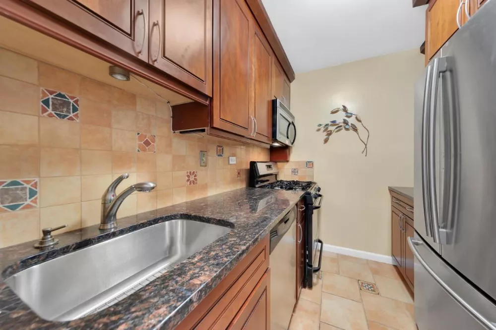 The apartment is a spacious haven with a custom built-in walk-in closet, providing ample storage for your belongings. The kitchen has been tastefully updated with full-size stainless steel appliances, a granite countertop, and abundant cabinet space, making it a dream for those who enjoy cooking or entertaining.