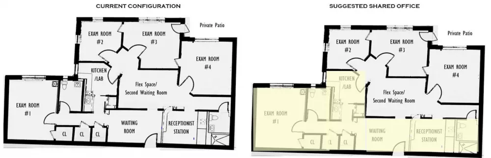 Currently configured as a doctor's office with four windowed rooms (all with water hook-ups in place), a bonus windowed lab room or extended kitchen, two waiting rooms, a dedicated reception area with an abundant storage closet, kitchen with full-size refrigerator & microwave and 1.5 baths (the full bathroom has a shower/half bath is wheelchair accessible). There's also a private door leading to a porch and walkway to the street. This unit also has the potential for other business professional use or can be converted as a residence.