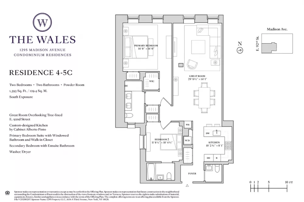 Residence 5C is a spacious 1,393-square-foot home featuring a side-by-side two-bedroom layout, two bathrooms, and a powder room. This light-filled residence is pin-drop quiet and enjoys a southern exposure over 92nd Street and Madison.The entry foyer leads into a spacious living and dining room with... See more