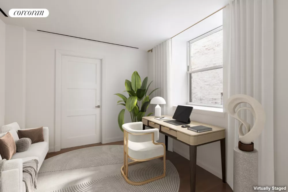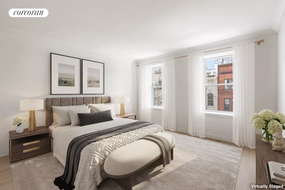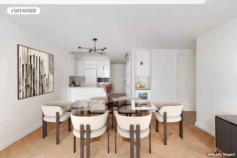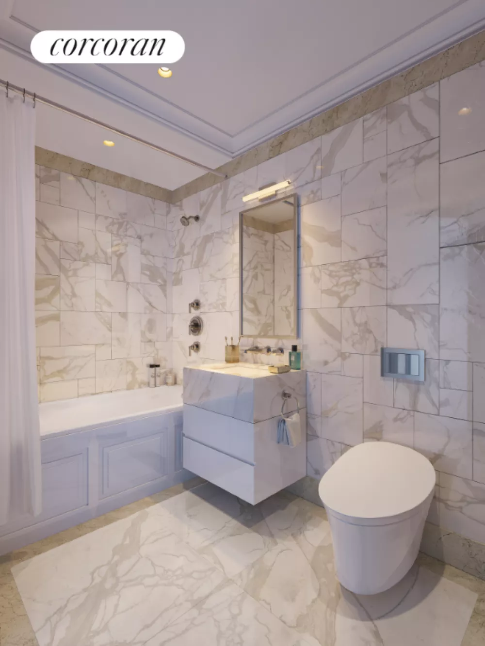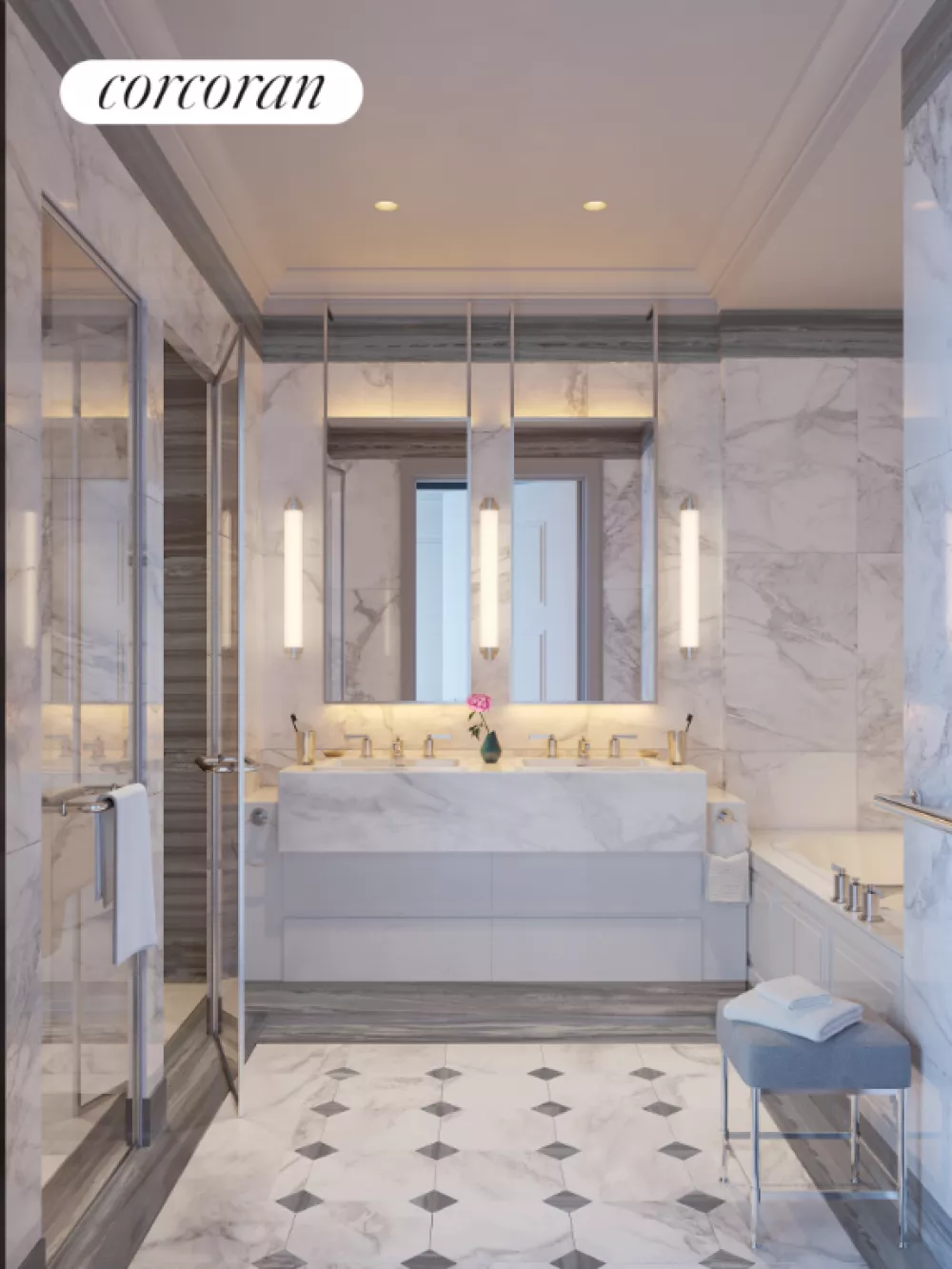 Residence 5C is a spacious 1,393-square-foot home featuring a side-by-side two-bedroom layout, two bathrooms, and a powder room. This light-filled residence is pin-drop quiet and enjoys a southern exposure over 92nd Street and Madison.