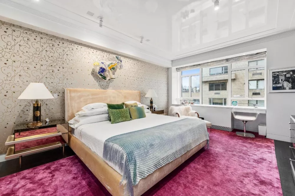 The spacious south-facing master bedroom suite features a custom designed dressing area and an exquisite marble bathroom. The north-facing second bedroom on the opposite side of the apartment has two closets and overlooks the building's quiet central garden. Additional features of this home include two entry closets, custom lighting and individually controlled A/C units in each room.