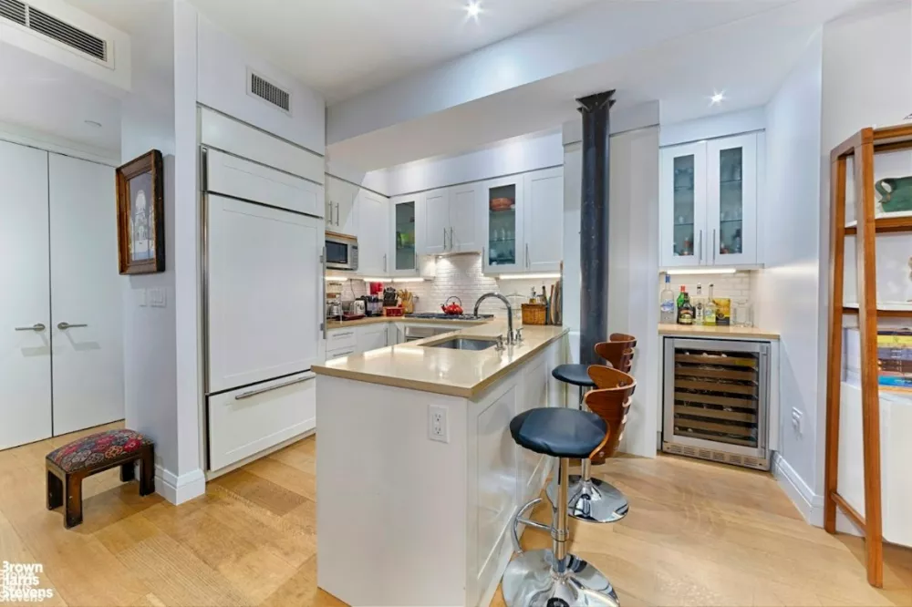 Only in Chelsea's Carriage House, recreated as a magnificent boutique condominium will you find all of this. Once a true horse & buggy carriage house at the turn of the 20th Century. History abounds. Original details have been meticulously preserved on the buildings facade and its attached garage, as well as in each individual unique home. Apartment 4B is an exquisitely designed technically updated Smart Home. A large, approximately 1100 square foot floor plan with 2 full bathrooms gives this open loft like layout a numerous ways to use the space. Designed by Gustavo Martinez allows for a 2nd. bedroom. Fully outfitted with large walk in closets including one for extra storage or even a small home office. Inclusive of a Bosch washer/dryer, black out shades on all of the over-sized windows, stunning newly installed lighting, plus radiant heated floors in the primary bathroom. The large chef's kitchen with plentiful cabinetry includes a Wolf gas cook top, a convection wall oven, along with a Subzero refrigerator, Bosch dishwasher, wine cooler and even a garbage disposal, to make clean up that much more efficient. Seamlessly integrated touch screen systems throughout including a Full Screen Projector, lighting, including a a built-in Sonos sound system all connected to either an iPad, Google Home or SIRI for maximum relaxation & ease.