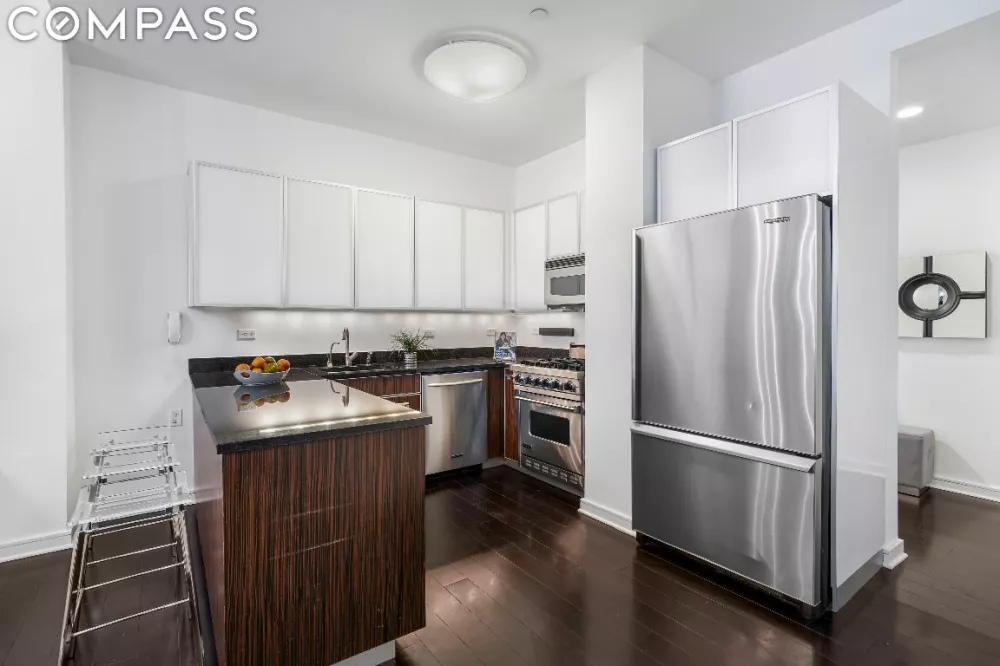 The gorgeous state-of-the-art chef’s kitchen features Maramba granite countertops, abundant cabinetry, and top-of-the line stainless steel appliances including a Viking range. The entire apartment has Brazilian Chestnut Maduro floors, central A/C, washer-dryer, and offers excellent storage with custom built-ins throughout. An additional storage cage in the building conveys with the apartment.