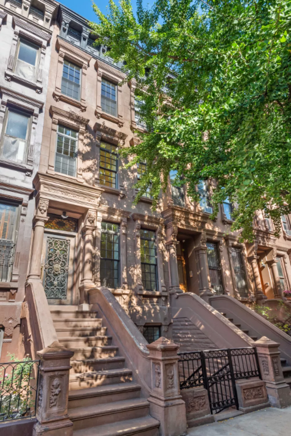 Tucked within a stately Harlem brownstone on a storied landmarked, tree-lined street, this 2,400-square-foot triplex sanctuary blends timeless beauty with modern sophistication. Sunlight pours through south-facing Pella architectural windows, illuminating oak floors that flow throughout the space. The home features three serene bedrooms that offer a tranquil retreat, complemented by 3.5 artfully designed bathrooms showcasing thoughtful aesthetics and modern elegance. A custom iron entry door welcomes you home, where Italian marble countertops shimmer in a bespoke kitchen fitted with sleek custom cabinetry, a dishwasher, and a Bertazzoni stove, ready to inspire culinary dreams. The primary suite is a haven unto itself, with a walk-in closet and a spa-like shower featuring a double vanity, perfect for quiet moments of reflection. Central HVAC with Google Nest thermostats ensures year-round comfort, and a washer/dryer adds convenience.