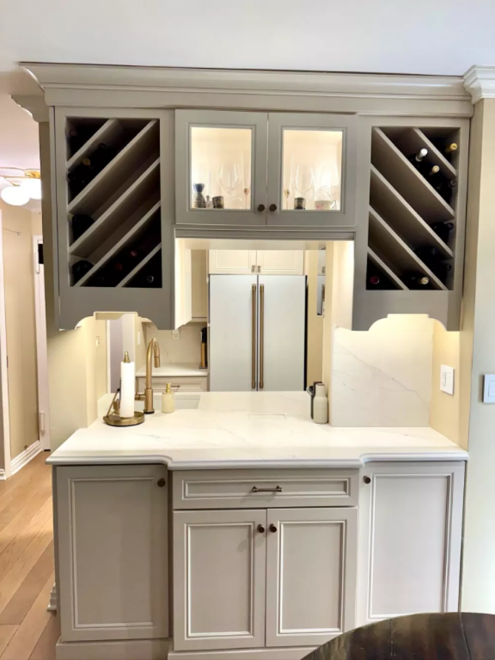 The kitchen is a masterpiece, featuring exquisite Compac Calacatta Glace countertops that complement premium Caf Bluetooth-enabled appliances, making cooking a breeze. Enjoy seamless meal prep with a Delta pot filler, touch faucet, recessed countertop outlet, and a custom coffee station that's perfect for kick-starting your mornings.
