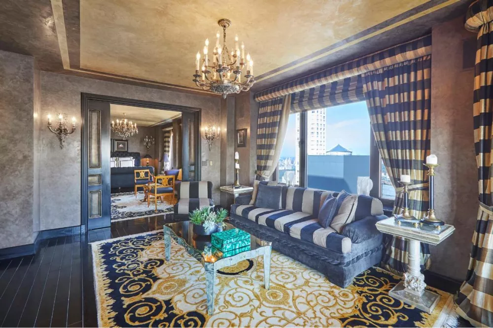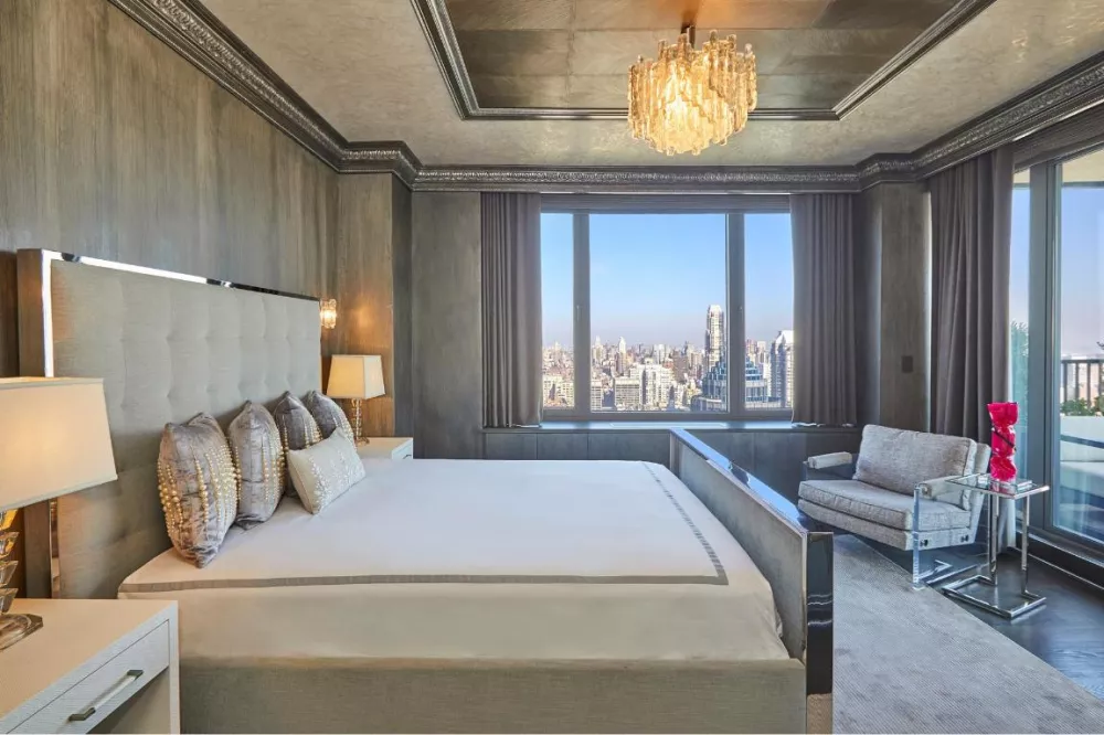 The 49th floor level consists of 3 master bedrooms, a staff room or gym with full bath and a complete laundry room. There are 2 more full baths on this level and a recessed terrace as well.