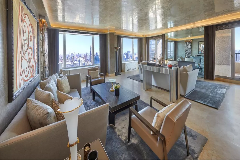 The 51st floor level is comprised of a private office, large corner den and a double sized main bedroom. Off the bedroom, there is a very large marble bathroom and room sized, matching walk-in dressing rooms and closets. Another recessed, corner terrace is conveniently located off the den.