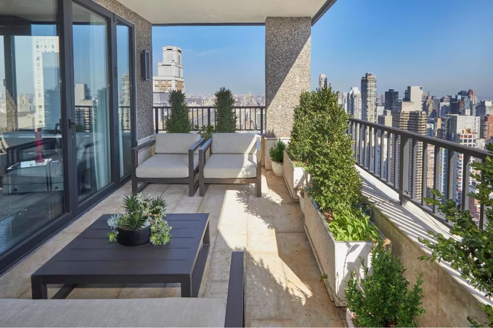 Rare opportunity to own a triplex apartment in the upper tier of the GALLERIA CONDOMINUIM just east of Park Avenue on Billionaire's row at 117 East 57th Street. The apartment is located on the 49th, 50th and 51st floors with recessed terraces on each floor. . Cleverly divided whereas the public rooms are in the middle of the 3 floors the private spaces, bedrooms, office and den are just 1 flight up or down!