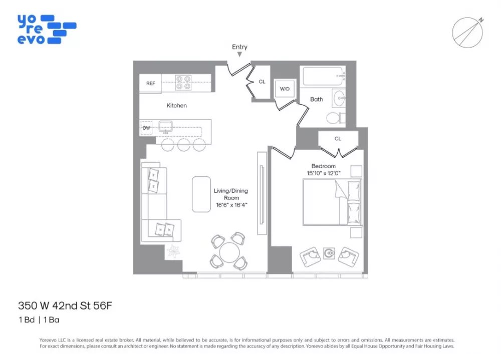 Welcome to The Orion, Apartment 56F.The star of the show in this one bedroom is the view. You overlook downtown Manhattan through south facing, nearly floor to ceiling windows on the 56th floor.Youll even be able to appreciate the view while cooking in the open kitchen, complete with plenty of counter... See more