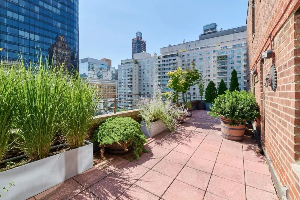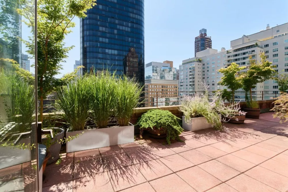 With bright south and east exposures, this spacious high floor Jr. 4 home is ideal for indoor or outdoor relaxation.  The rare, private landscaped 400sf Terrace is setback and is equipped with an automated Hunter irrigation system.  Through the entrance gallery is an exceptionally large 24’ long, Living Room that offers warm southern light with cherry wood floors, outstanding wall space and a perfectly positioned oak built-in.  The Kitchen has black granite countertops/floor, features top stainless-steel appliances and opens to the windowed Dining Area or Office.  Through the Dining Area is the main door to the crown jewel of this residence, the Terrace.  The extra-large Primary Bedroom has a private door to the Terrace and can easily accommodate a California King bed. The oversized Bathroom is windowed with a granite floor.  Other key features are custom lighting, California Closets and through the wall A/C.