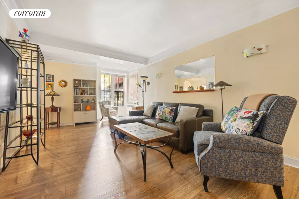 1P is located on the 1st floor and gets lots of light and has flowery, leafy, lawn views. The nearly 9-foot ceilings enhance the apartment's sense of openness and pre war elegance.