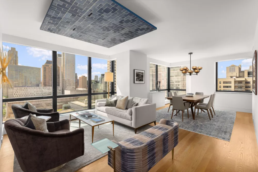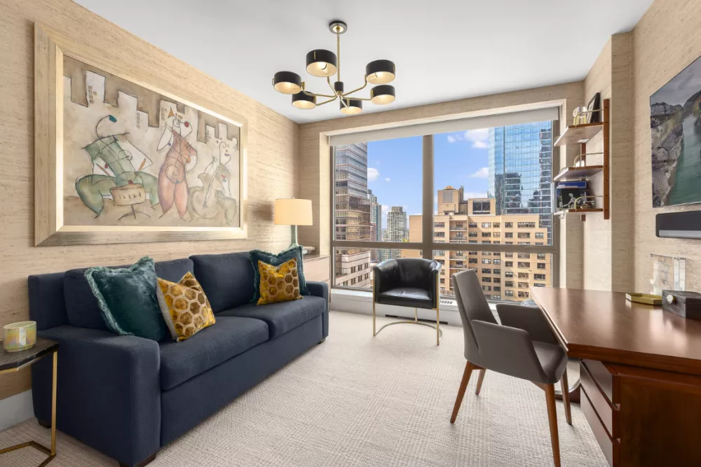 Perched in the prestigious Grand Millennium, this residence offers sweeping views of iconic landmarks such as the Metropolitan Opera, Broadway, Billionaire's Row, and the Hearst Building, all framed by brand-new, 9-foot floor-to-ceiling windows that flood the home with radiant southern light throughout the day.