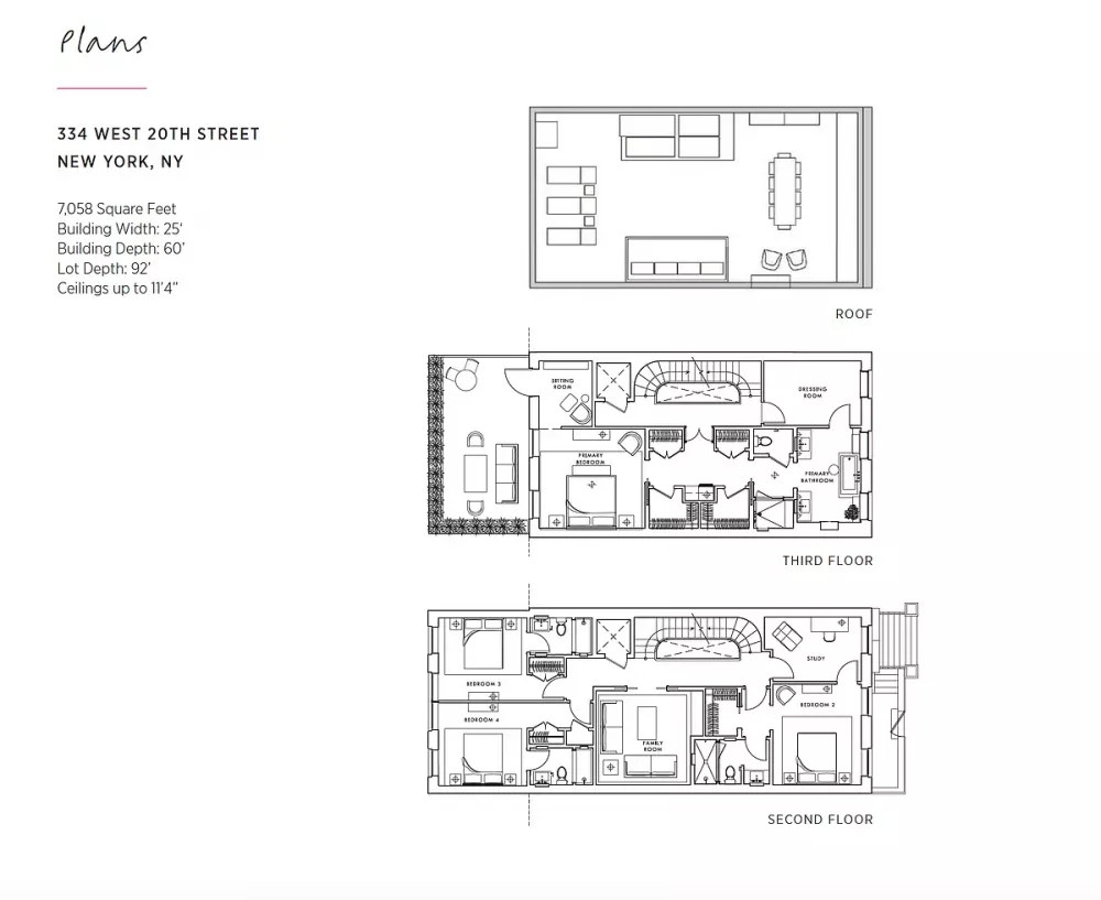 The result of a years-long renovation helmed by AD100 firm Gachot Studios, 334 West 20th Street is an impeccably renovated single family townhouse situated within the Chelsea Historic District. This 25-foot wide Greek Revival masterpiece spans 7,058 square feet across five levels, with three separate and distinct outdoor spaces including a tranquil tiered garden and rooftop deck.