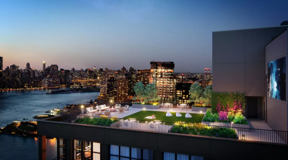 Residents at The Huron enjoy over 30,000 square feet of curated amenities and direct access to the maturing Brooklyn waterfront. Active spaces include a 50-foot indoor saltwater pool overlooking the river, a state-of-the-art fitness center with Peloton bikes, a movement/dance studio with mirrors and ballet bars and separate locker rooms with a sauna. There is a stunning resident's lounge with pool table, a formal dining room, a co-working area with pods, booths, and conference space, a game room, and a children's playroom. Outdoor spaces include a manicured waterfront promenade, an 8,000 square foot private park with recreation areas designed for kids, and two sprawling rooftops with awe-inspiring views of the iconic Manhattan skyline. Additional services include 24-hour concierge, private storage, on-site attended parking, a pet spa, a bicycle room, and a package room with cold storage.