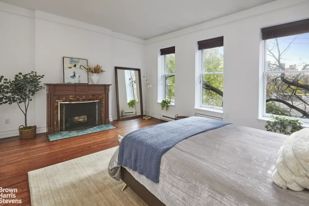 Positioned on a pretty brownstone block this home has lovely views of the tree tops and the architecturally pleasing former Mannes School of Music.