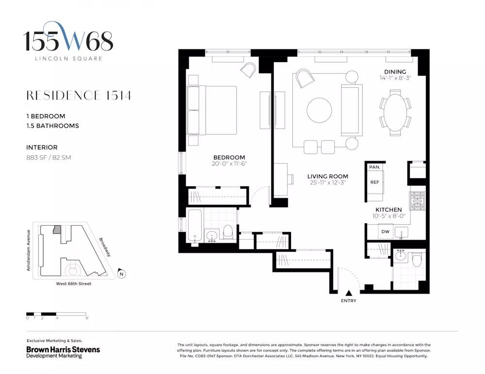 Exclusive Sales and Marketing Agent: Brown Harris Stevens Development Marketing. The complete offering terms are available in an offering plan from Sponsor. File CD83-0147 Sponsor: DTA Dorchester Associates LLC, 545 Madison Avenue, New York, NY 10022. Property Address: 155 West 68th Street, New York, New York 10023. Equal Housing Opportunity.