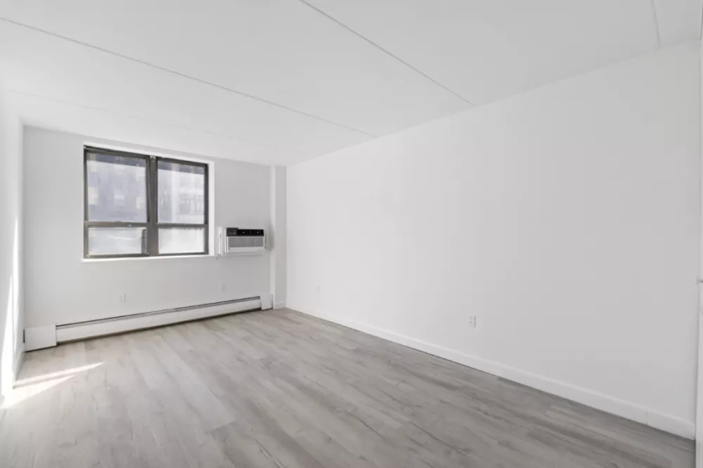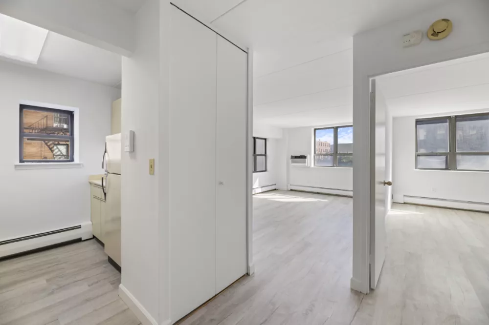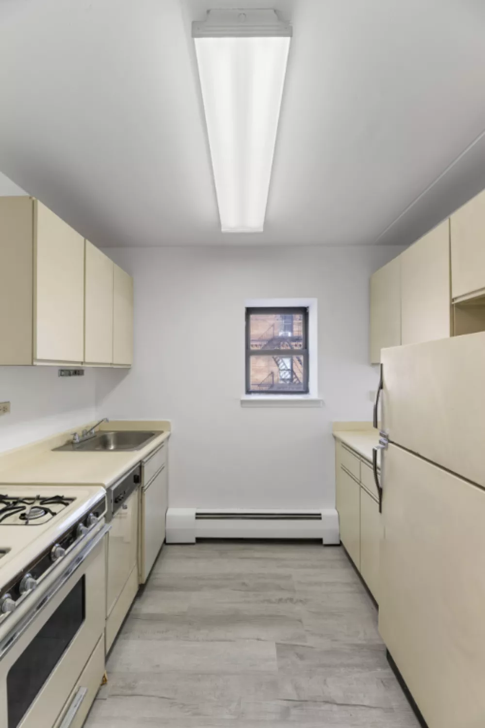 The living room has double exposures, north and east. There is a pass-through to the spacious kitchen, where a dishwasher can be added. There are 3 large closets throughout and 2 brand new built-in air conditioner units