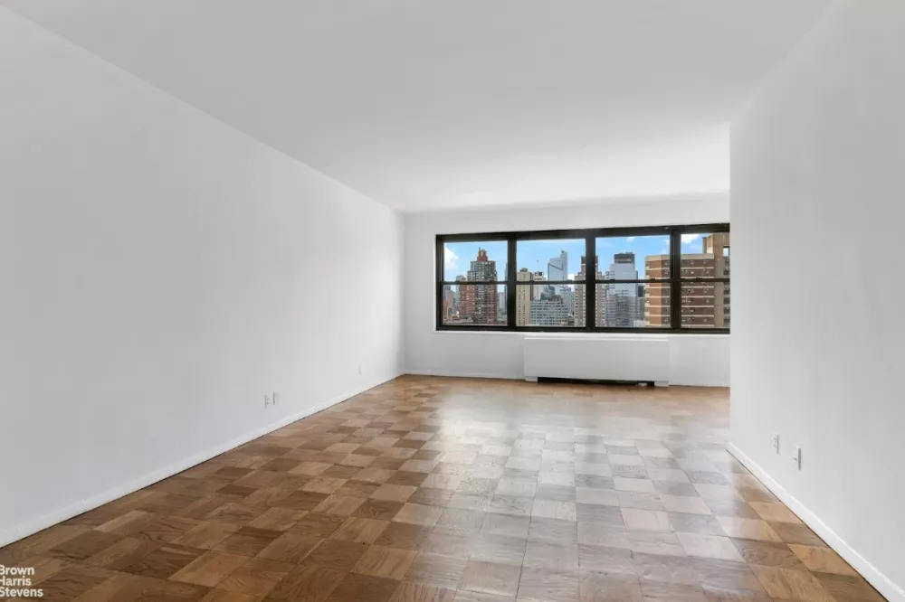 High floor, south-facing, alcove studio with amazing wide open city views including Midtown and Hudson River sunsets. This bright 23rd floor home is in mostly original condition and your imagination and budget are your only constraints. The foyer has a huge walk-in-closet, and there is a clean, two-sided, galley kitchen with relatively new white kitchen cabinets and newish refrigerator. The spacious living/dining area is bright, newly painted, and large enough for entertaining. The sleeping alcove accommodates a queen-sized bed and two night stands. The original white tiled bathroom is in very good condition. For a nominal fee, you can transform the bathroom with a new vanity and light fixture.