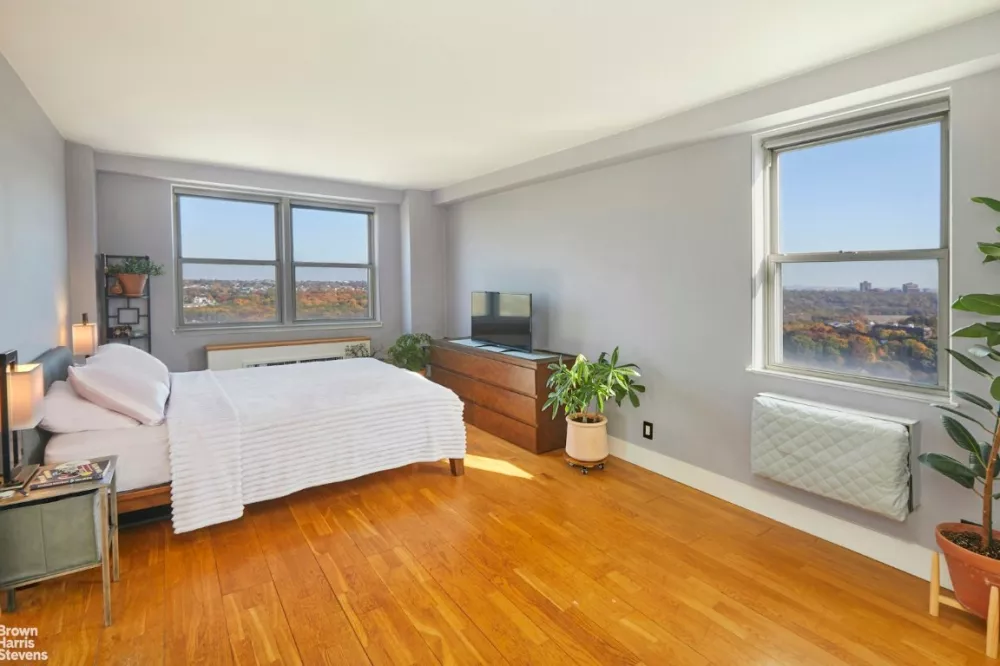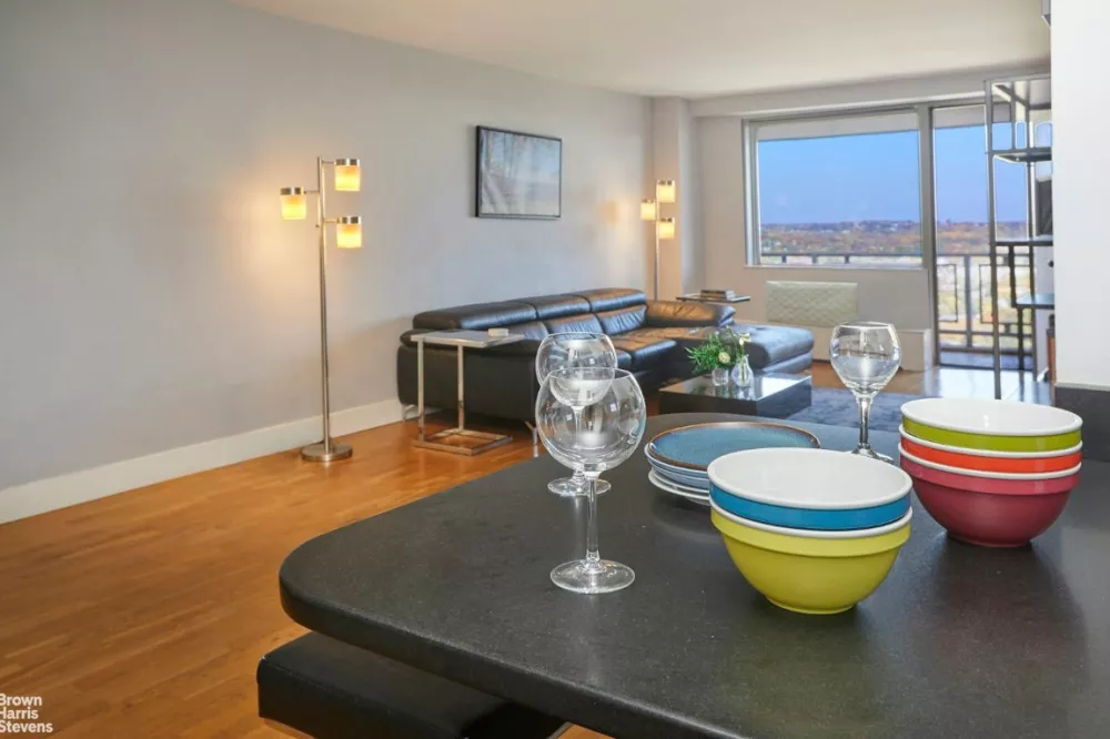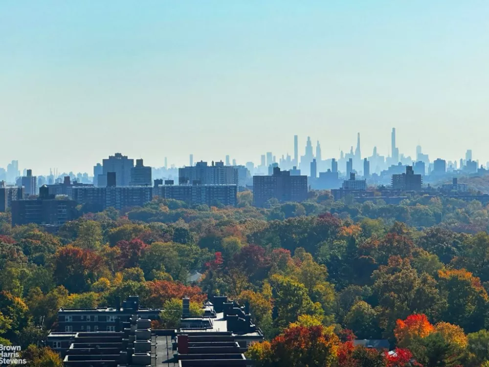 A rarely available renovated C Line on the 20th floor of the resort-like complex called Skyview on the Hudson, located in Riverdale, the Jewel of the Bronx, just 10 miles from Midtown Manhattan! The C line is the only true 2-bedroom, 2-full-bathroom layout in the complex, featuring split bedrooms. The apartment has been renovated and includes a windowed galley kitchen equipped with stainless steel appliances, granite countertops, and a dining bar. Enter the foyer, which features a wall of closets, leading to the dining area and a large living room, flooded with light for most of the day. You will be struck by magnificent eastern panoramic views from New Rochelle to Long Island Sound and Queens, visible from the customized large private terrace with wood flooring. You may not want to leave the terrace, enjoying stunning sunrises and unparalleled views of the expanse of endless trees, where you can watch the seasons change. Wide plank hardwood flooring runs throughout the apartment, except for the tiled kitchen floor. The primary suite, with eastern and southern exposures that offer city views, has a double closet and plenty of space for a king-sized bed and more, along with a renovated windowed bathroom. The generously sized second bedroom includes a large closet, and the second bathroom is tiled. NEW: Washers and dryers are permitted in the apartment with board approval.