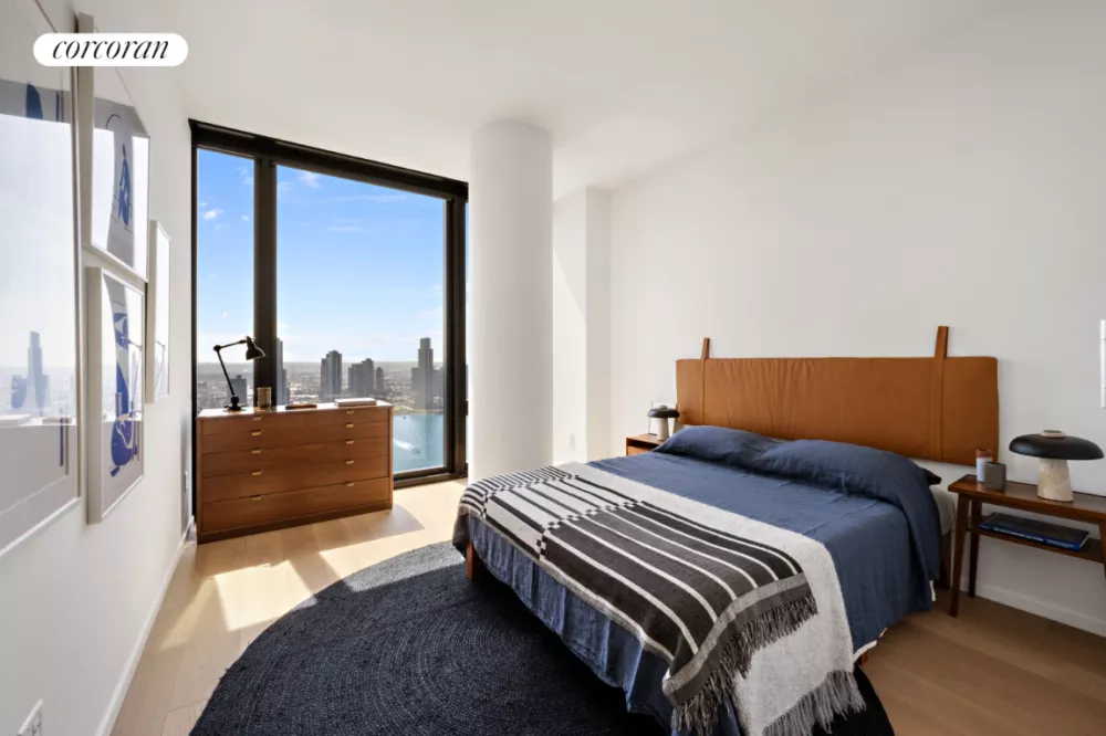 Designed by Meier Partners, the residence interiors are a striking contrast to the black glass exterior, reflecting a white color palette. Living spaces are immersed in natural light radiating through the floor-to-ceiling windows. White oak floors are found in all residences and open kitchens boast white Calacatta Lincoln marble counters, Dornbracht fixtures and Gaggenau appliances clad in custom-crafted Italian white lacquer. Each residence is equipped with a built-in Crestron smart home system that regulates temperature, lighting, and motorized window shades. These functions can be seamlessly controlled by residents through any iOS or Android device.