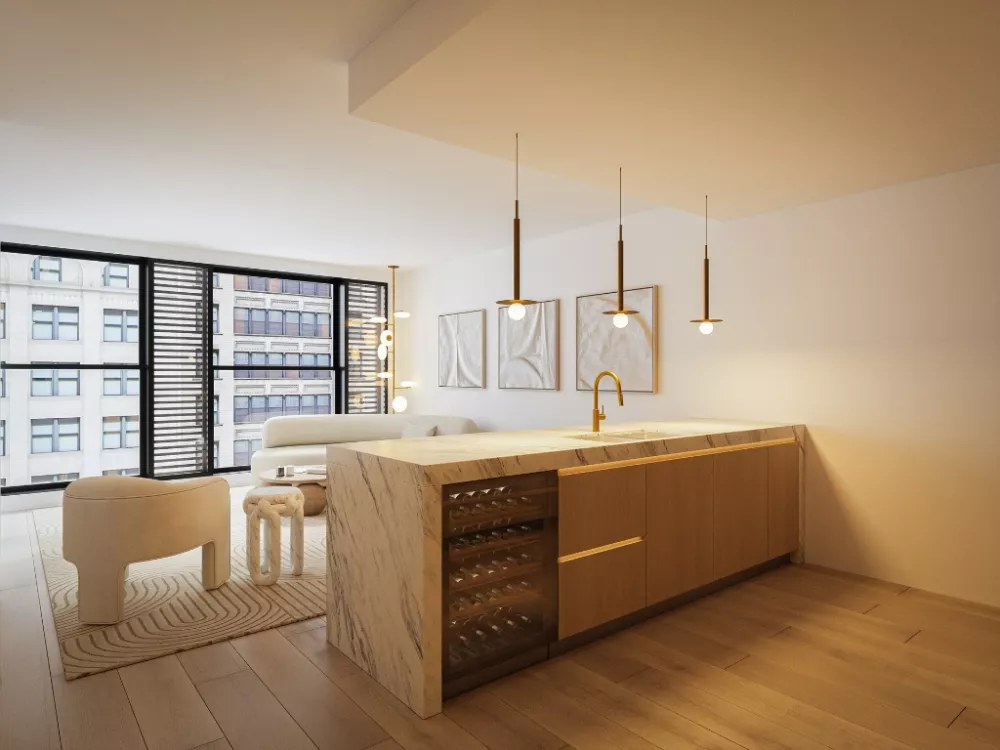 LOUIE 18 An architectural masterpiece that represents a union of European elegance and American industrialization, remarkably integrating the style of Flatiron, Chelsea, and Union Square neighborhoods with timeless interior aesthetics. Welcome to Residence #5, a 3-bedroom 2-bathroom apartment featuring a private outdoor space, floor to ceiling picture windows with classic city views, and a private elevator access. The unit occupies the whole floor and has South and North exposures. Your new home design represents a celebration of function and style by offering an expansive living area, beautiful white oak floors throughout, top of the line appliance package including in-unit Bosch washer and dryer, and ample closet space. Unveil the heart of culinary excellence in the open kitchen, where custom-crafted rich oak cabinetry glows under sophisticated illumination. The elegance of stone slabs meets the warmth of GRAFF brass fixtures, creating an ambiance of refined luxury. Complemented by a massive Vigil stone island and an exquisite Miele appliance package, including the multi-function speed oven and the built-in espresso bar, your new kitchen is a testament to gourmet perfection, designed for both the avid chef and the lover of beauty. The luxury of the kitchen is mirrored in the serene tranquility of the primary and secondary bathrooms. Stone slabs expanses lay the foundation for elegance, paired with custom oak vanities that speak of meticulous craftsmanship. GRAFF brass fixtures add a touch of warmth, enhancing the sophisticated ambiance. Here, every moment is an invitation to unwind in an oasis of refined comfort of a steam shower or a deep soaking tub. Both primary and second bathrooms filled with imported high-end finishes, including Albarium stone flooring, dimmable backlit mirrors, and smoke glass sconces, are the epitome of luxury. LOUIE 18 is a brand-new boutique condominium nestled in the heart of Ladies Mile Historic District, the symbol of Gilded Age architecture and New York City grandeur. Inspired by the notable loft style NYC buildings by a prominent architect Louis Korn, LOUIE 18 is the collaborative work of the strong team of New York City and European architects, interior designers, and marketing specialists. The building features a collection of 9 full floor residences available in 3-bedroom full-floor layouts and enhanced by direct elevator access and private outdoor spaces. Residents will enjoy the opulence of common spaces that include meticulously designed lobby, fitness room, spa, and a stunning rooftop with endless city views, lush planters, lounge chairs and grills. LOUIE 18 is located at the intersection of three New York City’s posh neighborhoods: Flatiron, Chelsea, and Union Square. Dozens of restaurants, cafes, bars, grocery stores, parks, entertainment options, and shops are steps away from its residents including Ralph’s Coffee, Levain Bakery, Eleven Madison Park, Eataly, Whole Foods, Trader Joe’s and many others. Nearby subway lines include L/N/Q/R/W/4/5/6/F/M/1/2/3.