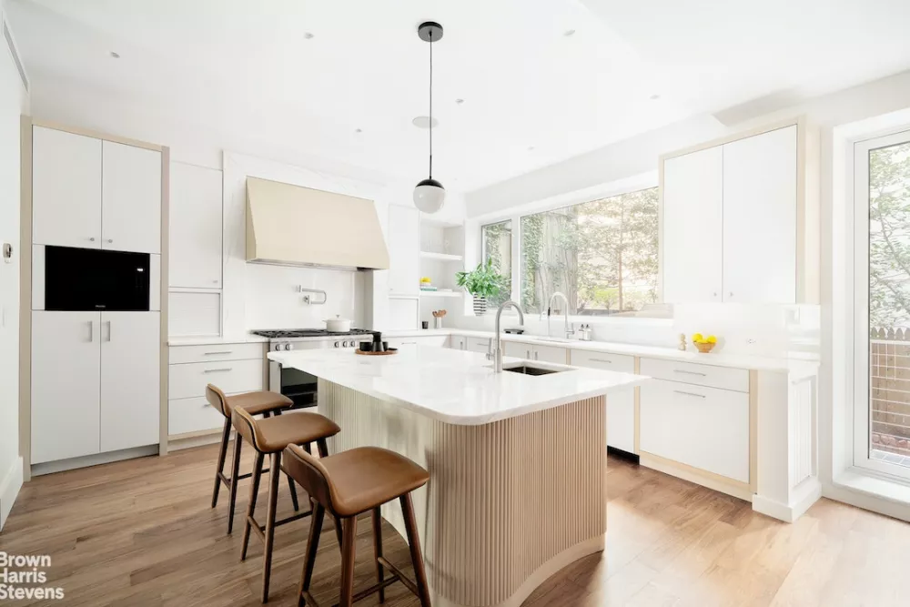 Ascend the grand stoop through the gracious entry foyer into the magnificent Parlor Floor. Ideal for impressive entertaining, the Parlor Floor boasts an elegant dining room at the front and a beautiful kitchen at the rear of the home, both of which receive dazzling sunlight through grand windows. The kitchen has direct stair access to the garden, ideal for entertaining during the warmer months, and is equipped with Carrara marble countertops, a large center island and top-of-the-line appliances by Miele, including a six-burner with a griddle stove, double oven, large refrigerator and freezer, a temperature controlled wine fridge, dishwasher, microwave, pantry, and soft closing cabinets throughout. The Parlor Floor also features a full bathroom and an abundance of storage.