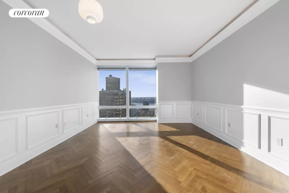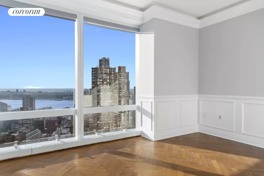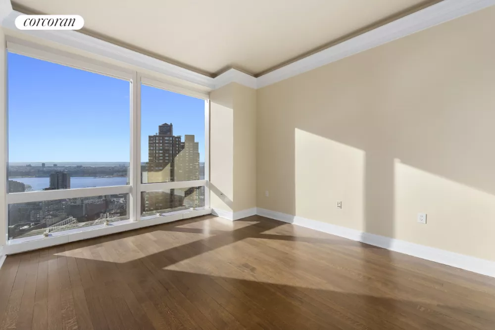 The Residences at The Mandarin Oriental offer a incomparable lifestyle for the busy New Yorker, or world traveler. Apartment 55F is the perfect two bedroom boasting incredible skyline and river views from its perch over Manhattan through floor to ceiling windows. Elegant finishes include herringbone hardwood floors throughout, crown moldings, cove lighting, remote blinds and stunning marble bathrooms. An efficient kitchen offers Miele appliances and the home has central air conditioning and a washer/dryer. Sit in your living room and get lost in the vistas this rare apartment has to offer.