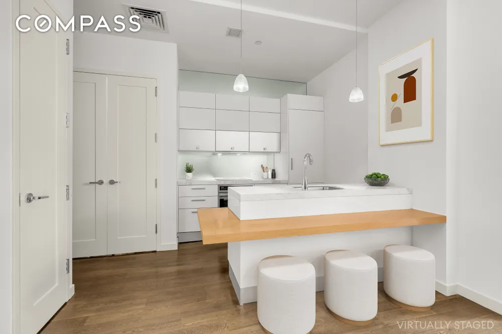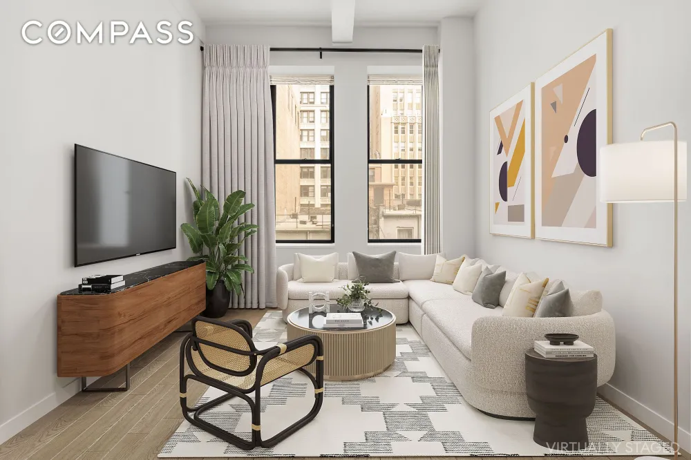 Centrally located on a quiet stretch of 36th street between 5th/Madison, this loft-like-studio has it all! Featuring ~13 foot ceilings, central AC and heat, in-unit washer/dryer, 3 large closets, and a fabulous eat-in kitchen. The oversized windows face North over a quiet courtyard, providing pin-drop-quiet... See more