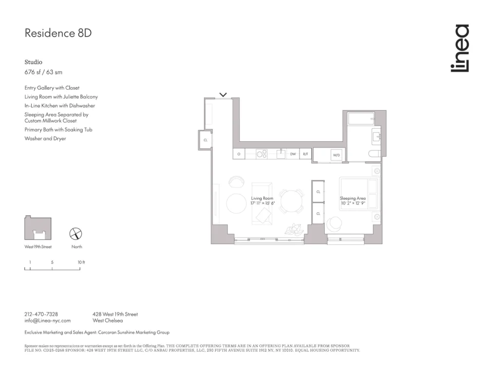Exclusive Marketing and Sales Agent: Corcoran Sunshine Marketing Group. The complete offering terms are in an Offering Plan available from Sponsor, File No. CD23-0268. Sponsor: 428 West 19th Street LLC, c/o Anbau Properties, LLC, 230 Fifth Avenue, Suite 1912, New York, NY 10010. Property Address: 428 West 19th Street, NY, NY, 10011. Equal Housing Opportunity.ge for purchase, package and mail room, and cellar-level commercial laundry facilities.