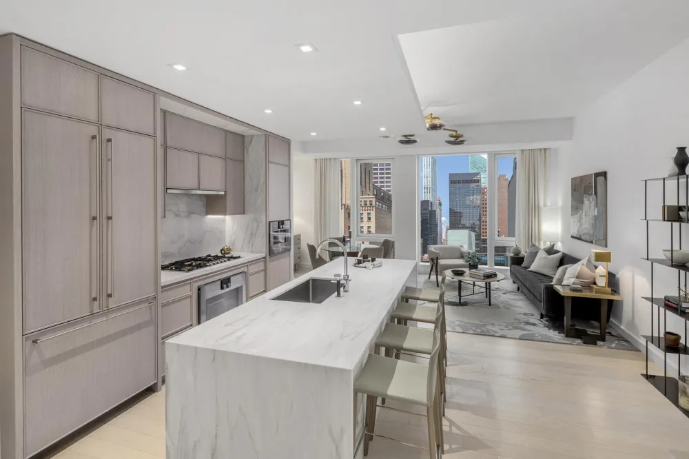 At 71 stories, The Centrale takes its place alongside Midtown Manhattan's most iconic buildings, encompassing a collection of 124 classic yet undeniably modern residences, envisioned by Champalimaud Design. The Centrale's exterior design by Pelli Clarke Pelli Architects, builds upon classic Art Deco architecture with contemporary elements thoughtfully displayed throughout, including the lightly reflective glass facade articulated with facets of terracotta chevrons. The Centrale reveals its base, body and crown from street to the sky with crystalline switchbacks, creating a dynamic rhythm of angled reflections of the surrounding Midtown landscape.