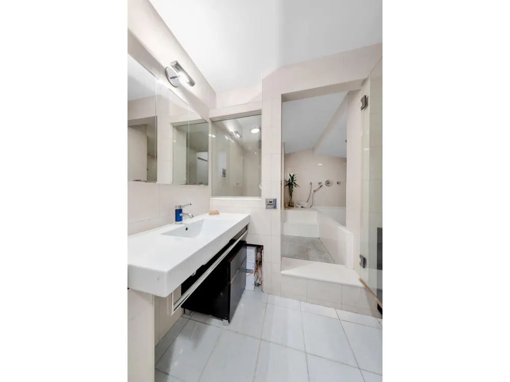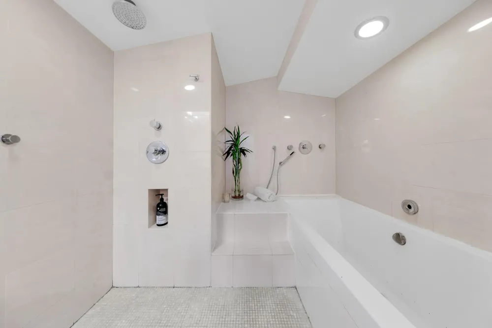 Upon entering, you are greeted by a large, welcoming foyer that leads into an open-concept living, dining, and kitchen area. The gourmet kitchen features full-sized appliances, while the apartment includes two full bathrooms. The primary suite is a true retreat, with a spa-like en suite bathroom offering a steam room and a jacuzzi tub for ultimate relaxation. Additionally, the apartment is equipped with an in-unit washer/dryer, with an extra laundry room conveniently located in the basement.