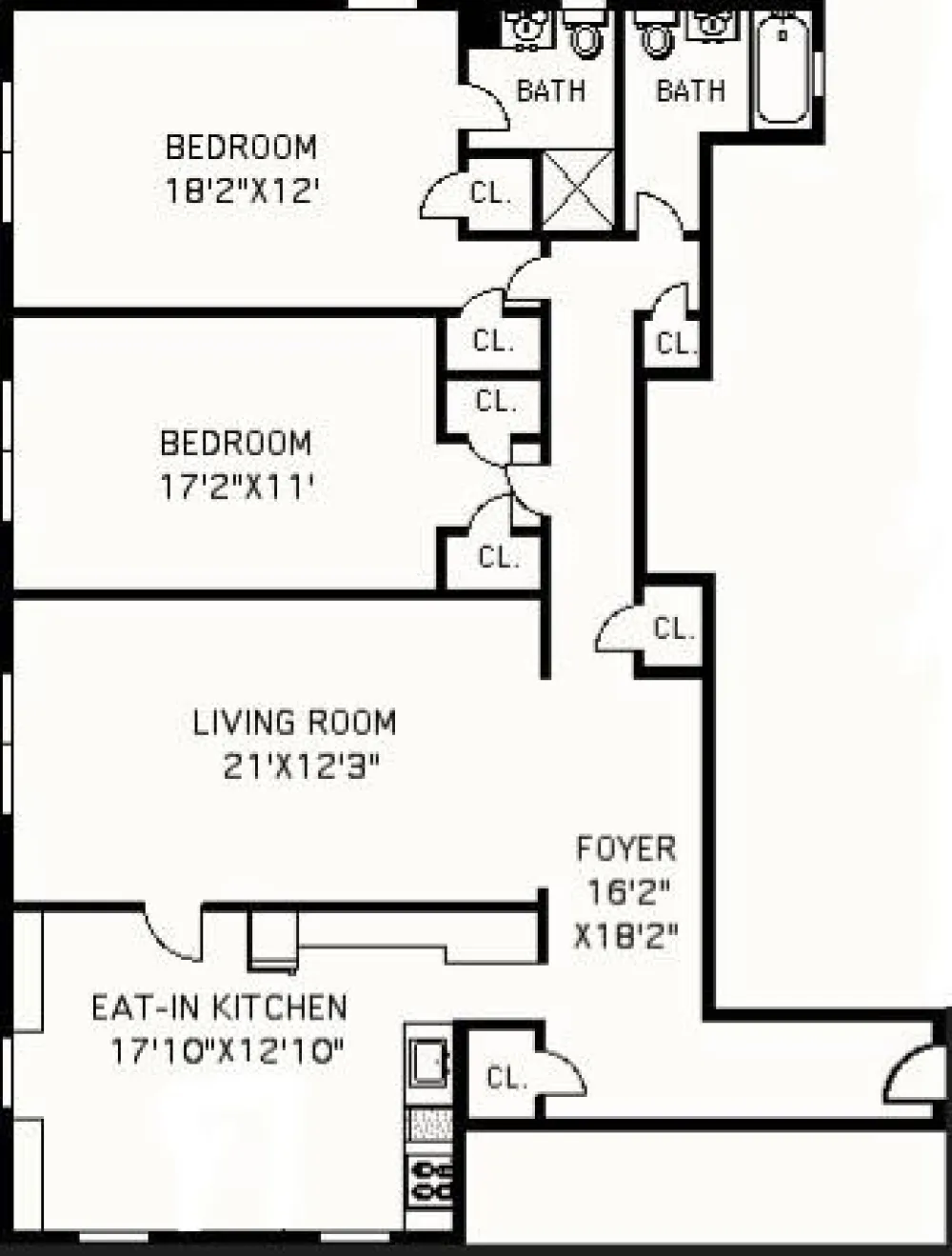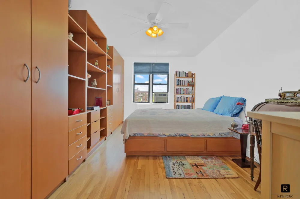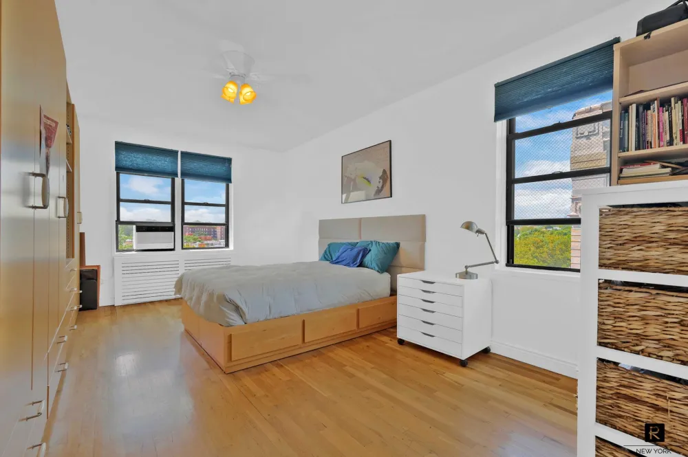 The primary bedroom has an ensuite bath and easily fits a king bed, with plenty of room for furniture and a sitting area. It has two closets and two windows with north and west exposures that bathe the room with warm light. The second bedroom also fits a king bed, with two closets of its own. There are three additional closets in the apartment which add up to seven closets! High ceilings and hardwood floors add to the charm of this lovely apartment.