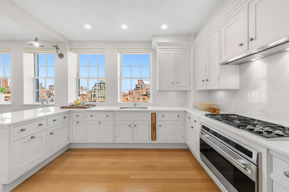 No detail was overlooked, and no expense was spared in the construction of this unique penthouse. Additional features include quarter-sawn white oak herringbone hardwood floors, polished marble windowsills, Lutron lighting, and multi-zone central heating and air conditioning.