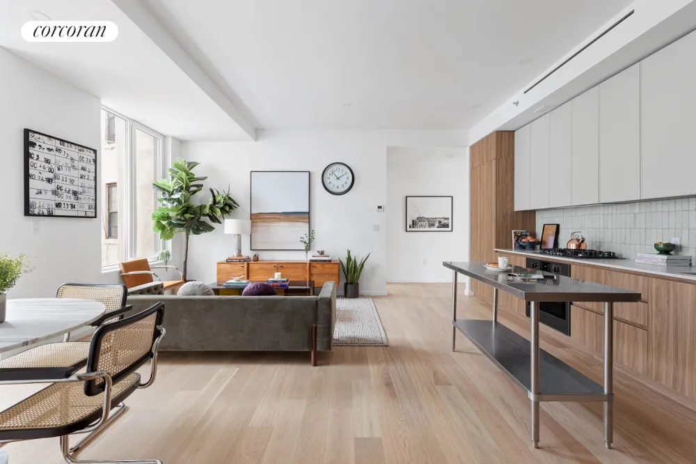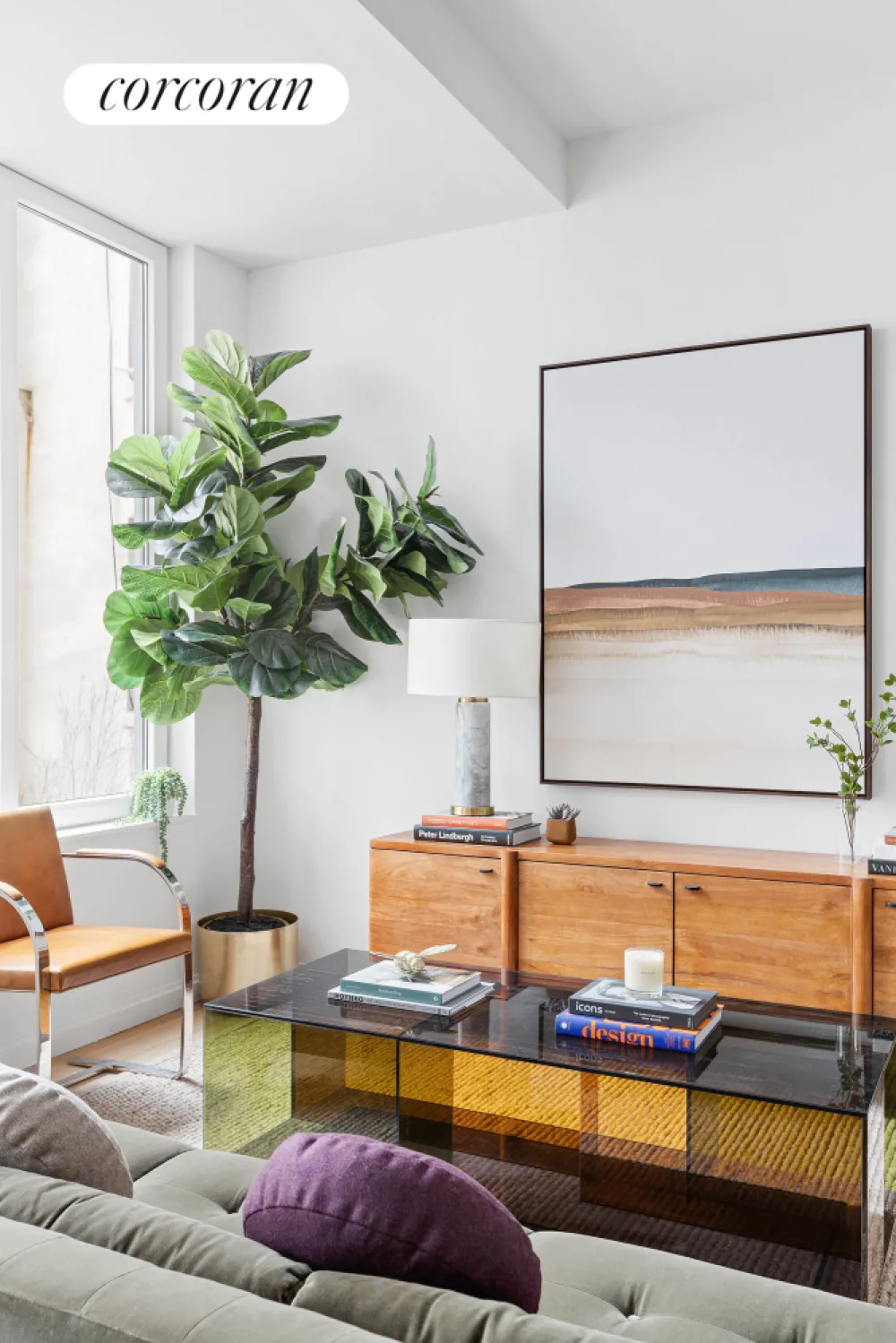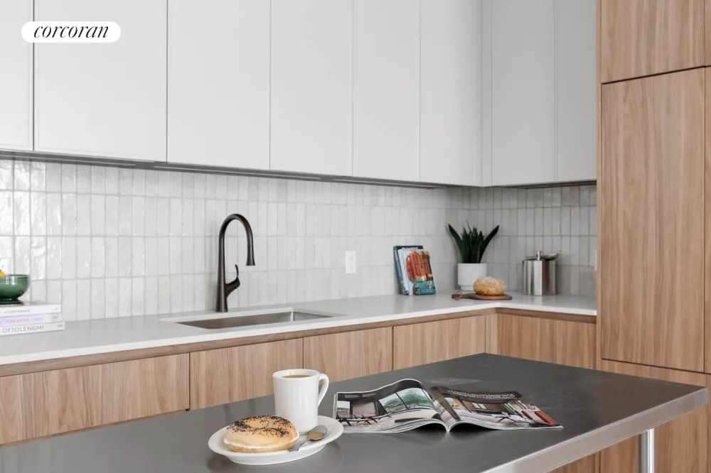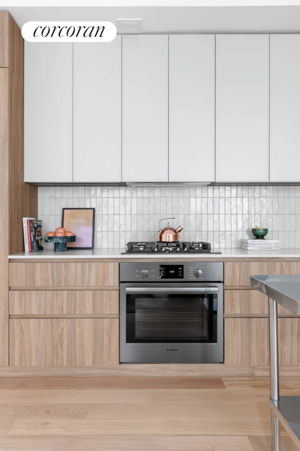 Soaring 10" minimum ceiling heights and oversized windows are the defining characteristics of these light-filled homes. The corner orientation assures that almost every unit has multiple exposures, and this is most evident in the open plan living and dining rooms. Kitchens have been carefully crafted to include maximum storage and pantry space within custom floor-to-ceiling oak and lacquer cabinetry, paneled appliances including a Fisher-Paykel fridge, Beko Dishwasher, a Bosch gas cooktop & convection oven, and striking terracotta backsplashes and natural quartz countertops. These do not live like your average cookie-cutter apartments. Primary bathrooms are awash in Calacatta Gold marble mosaics with glass-enclosed walk-in showers that include custom storage niches and are complemented by large vanities and oversized decorative mirrors. The secondary baths are equally impressive with handmade terracotta tiles, great lighting, and oversized niches in the tub areas. Oil-rubbed bronze fixtures add a handcrafted touch to the timeless elegance seen throughout these wonderful spaces.