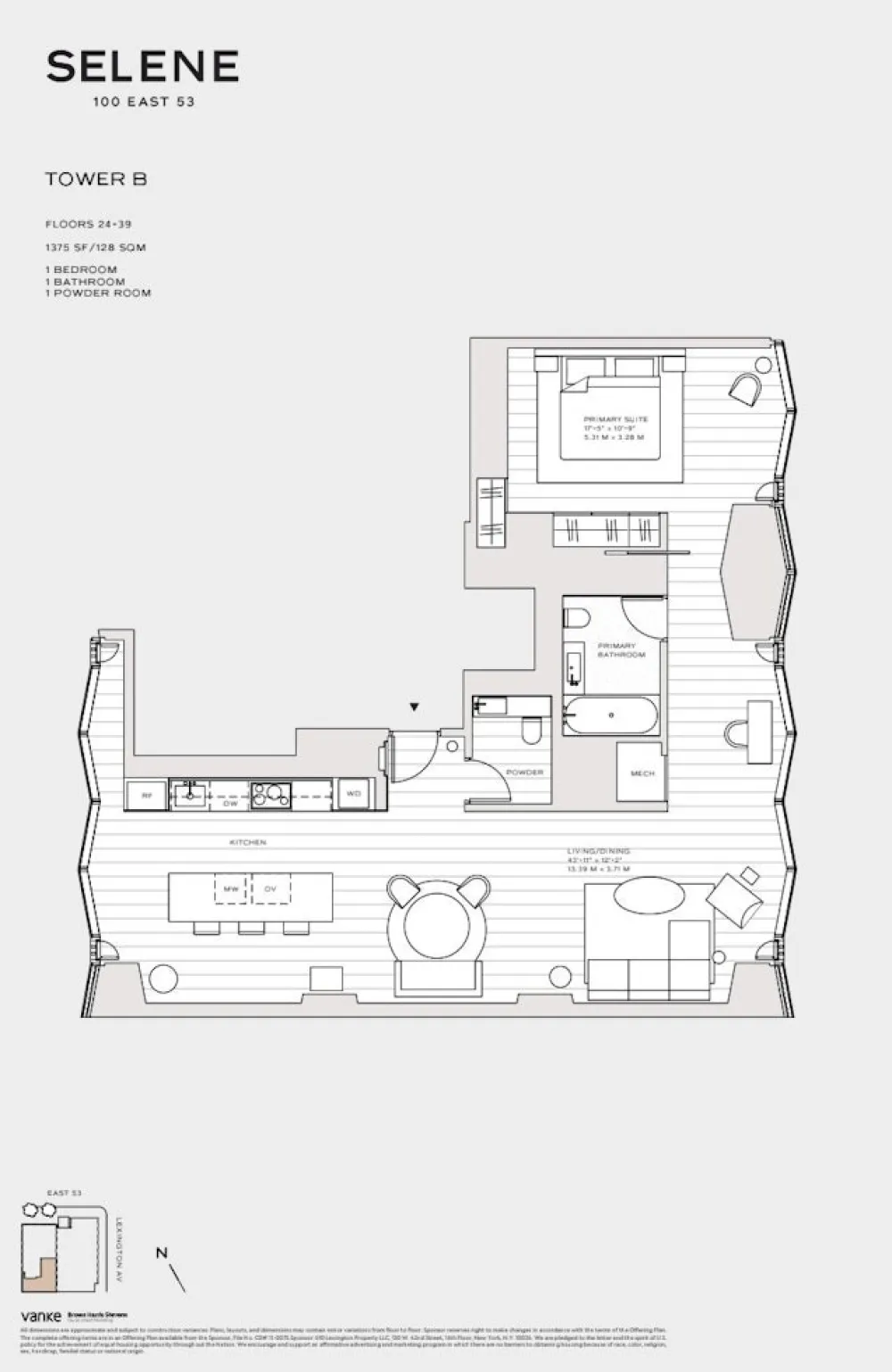 1 BEDROOM, 1.5 BTHS, Selene Condo off Park Avenue
