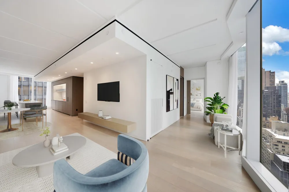 Open Kitchen features: Carrera Marble Countertops and Backsplash; Foster+ Partners-designed Cabinetry with Oak Millwork and all Gaggenau Appliances.