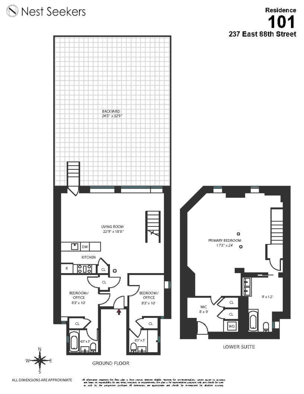 UPPER EAST SIDE TOWNHOUSE LIVING but a condo! Large Private Garden Fast, Simple Approval: Streamlined 2-page board application! Urban Serenity Meets Outdoor Luxury Discover the perfect blend of space, style, and serenity in this rare 3-bedroom, 3-bathroom 1,475 sq.ft Garden Duplex that can easily be converted to a large 2 bedroom, 3 bathroom Condo on the Upper East Side with its very own 850 sq.ft private outdoor space (see alternate floorplan). As you enter, you'll be greeted by wall to wall windows spanning the width of the apartment filling the home with natural light and beautiful views of your private backyard oasis. The main level boasts an open layout designed for seamless indoor-outdoor living, featuring a spacious gourmet kitchen, a dining area, and a living room that opens directly onto the garden – perfect for entertaining! The chef’s kitchen is equipped with premium appliances, including a Sub-Zero refrigerator, Bosch stovetop/oven, dishwasher, and offers a large kitchen peninsula. Also on this level are two en-suite bedrooms, each with newly renovated bathrooms (one with a tub and the other with a shower). The expansive 733sq. ft. primary suite is located on the lower level, and features a luxurious 5-piece bathroom, and a generous walk in closet. This suite also offers a versatile space for workout equipment or a cozy seating area, along with additional storage underneath the stairs! A Backyard That’s Truly a Game-Changer Whether you are a pet owner looking for a secure, private yard or a host who loves to entertain, the secluded and quiet 850sq.ft backyard is a rare find in NYC! Perfect for unwinding after a long day at work, or hosting family and friends, this spacious outdoor retreat is equipped with ambiance lighting and a separate irrigation system on timers- ideal for gardening enthusiast! Additional highlights of this exceptional home include: Nestled on a peaceful, tree-lined street in the heart of the Upper East Side, 237 East 88th Street, unit 101 offers the best of city living with a quiet neighborhood charm. Enjoy easy access to nearby parks, dining, shopping, and cultural attractions. Additionally, this condo offers a straightforward board application process, making it a pleasure to call home.