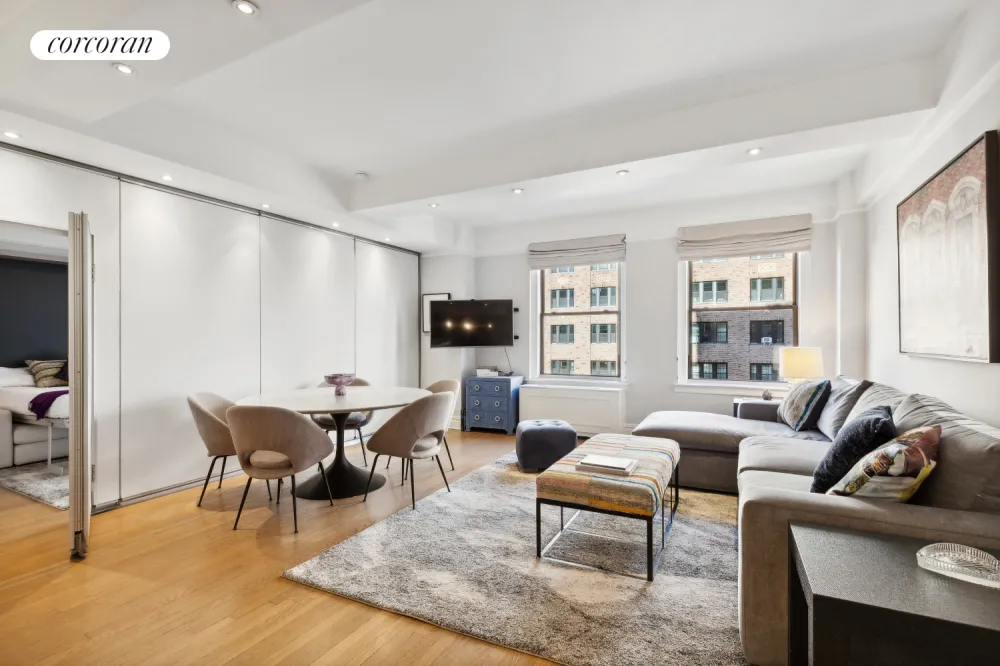 Perched high above 72nd Street off of Central Park West, this 11th floor renovated three bedroom, three bathroom home features northern and southern exposures and is a beautiful blend of prewar charm and contemporary living. The 9" ceilings and open kitchen give this apartment a loft-like feel. The gourmet kitchen features granite countertops, custom cabinetry and a full suite of stainless steel appliances including a Sub-Zero refrigerator. The gracious living room is adjacent to the formal dining room/den/3rd bedroom. The primary bedroom features two walk in closets and a large en suite bathroom with a jacuzzi bathtub. The south facing second bedroom features ample closet space and en-suite bathroom. Additional features include oak hardwood floors throughout, custom lighting, custom sound system, custom closets and lighting, tasteful built-ins, and an in-unit Bosch washer/dryer.