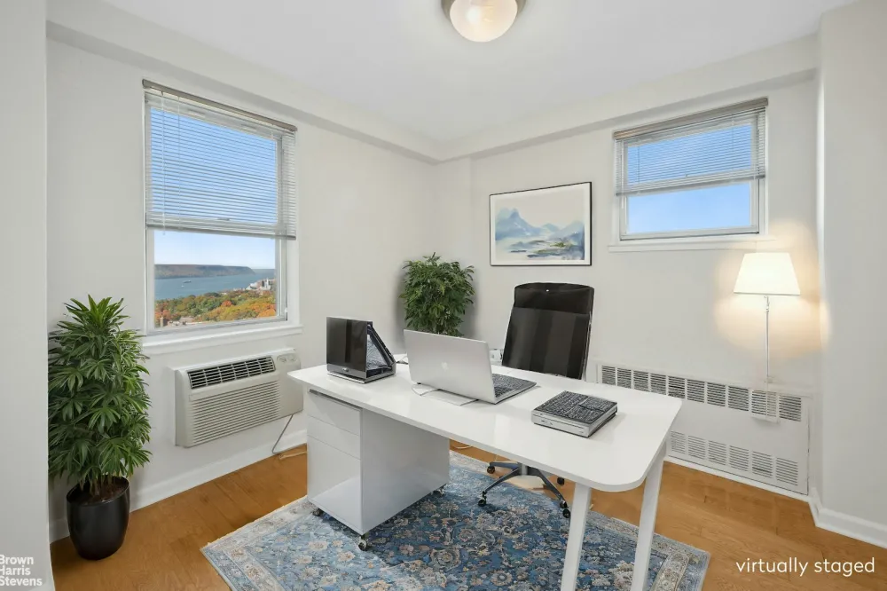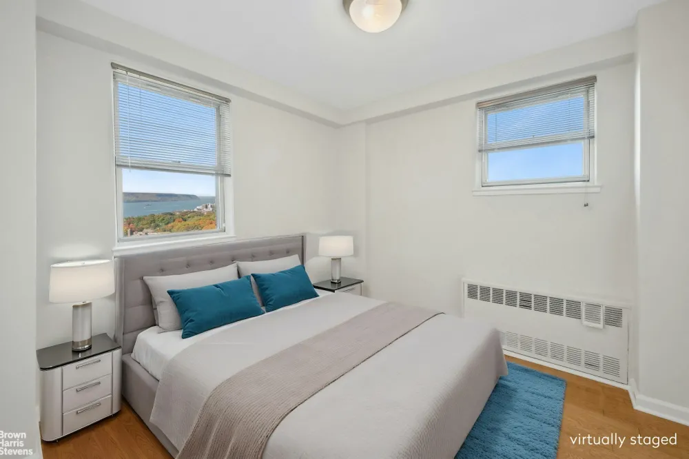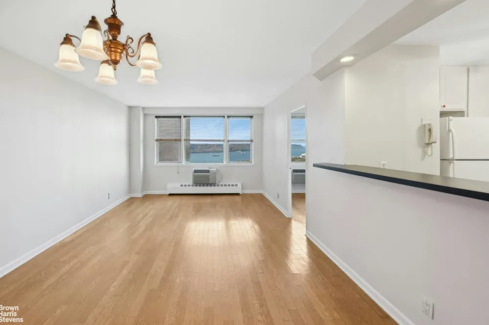 Lovely view, High floor and Great space. 2 Bedroom 1 bath at full service Coop "Skyview on Hudson". Lots of natural light with west north Hudson River views and great interior space. Large primary bedroom with walk-in closet. Good additional closet space throughout. Kitchen and bath are in excellent... See more