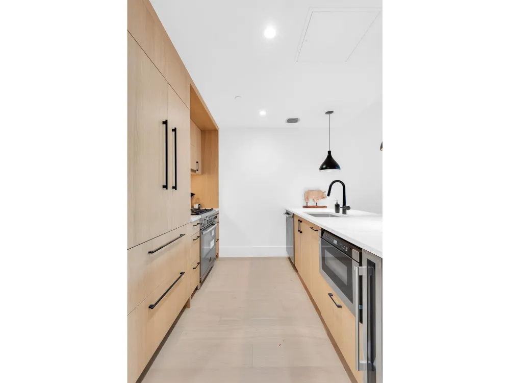 Unit 3A is an impeccably designed 1,094 Sf apartment, bathed in natural light that exudes contemporary elegance with 2 large bedrooms, 2 sleek full bathrooms featuring heated floors, and oversized windows with triple pane glass throughout. Direct elevator entry brings you into a gracious layout, with high ceilings and a welcoming open floorplan for relaxing, dining, and entertaining. The large living and dining area hasfloor-to-ceiling windows and flows directly to your outdoor balcony through sliding doors. The large kitchen is styled with tasteful cabinetry, generous island for extra seating and a separate laundry/storage room. For the chef in you, there is a Bertazzoni Master Series 5-burner stove/range, Liebherr paneled refrigerator, Bertazzoni dishwasher, and Summit wine fridge for your favorite vintage.
