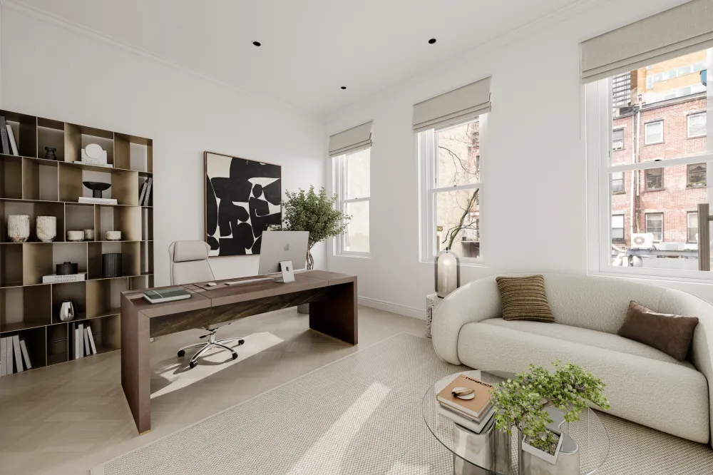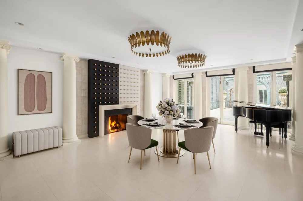 116 East 61st Street stands as a beacon of elegance and sophisticated living in the heart of Lenox Hill, off the prestigious Park Avenue. This single-family townhouse, meticulously restored and once the domain of an internationally renowned interior designer, merges historic charm with modern luxury across its five-storied, triple-mint condition facade. With an impressive 5,750 square feet of living space, the residence boasts a myriad of amenities including a custom artisan elevator, central air conditioning, a Crestron System for modern convenience, and a security system ensuring peace of mind. The gated entry opens onto the garden level and unveils an elegant white exterior, leading into a contemporary chef’s kitchen on the first floor, complete with French limestone floors, Venetian plaster walls, a breakfast booth, island seating, and pocket doors for an intimate dining experience. The spacious dining room, adorned with a working fireplace, connects through three large French doors to a sun-filled, south-facing garden, presenting a perfect backdrop for grand gatherings. Ascending to the parlour level, one finds a palatial living room with soaring 12 ft ceilings, neoclassical moldings, and open views, complemented by a sophisticated library across the landing, featuring built-in banquettes, deluxe wet bar, and an additional fireplace. The third floor is dedicated to a luxurious primary suite, featuring high ceilings, fireplace, and an ensuite marble bathroom with a separate tub and shower, leading into an expansive dressing room. The fourth floor houses two additional large bedrooms, both with ensuite baths and picturesque views, highlighting the home’s thoughtful design—blending single-family comfort with Park Avenue elegance. The pinnacle of the residence is the rooftop terrace, offering sweeping city views and an ideal setting for entertaining On the lower level of the townhouse, a full-height, finished basement includes a gym, a large laundry room, and ample storage space, rounding out the home's extensive amenities. 116 East 61st Street is a masterpiece of design and craftsmanship, offering a unique blend of privacy, luxury, and convenience in one of Manhattan’s most desirable neighborhoods, making it a truly exceptional place to call home.