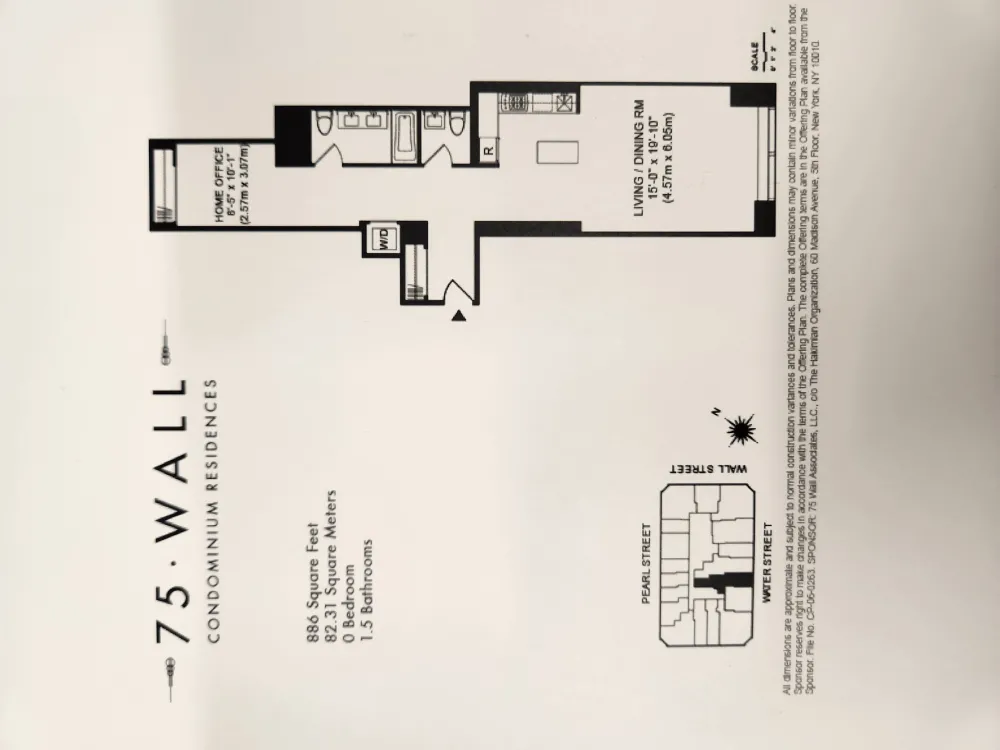 *** FOR INVESTORS ONLY - TENANT IN PLACE UNTIL JUNE 2026 *** Feels like a real one-bedroom but is actually a HUGE Studio with home office space. Spacious and open thanks to its loft-like ceilings, this contemporary designer apartment sits on the 27th floor of the coveted 75 Wall Street building, located just a short walk from premier shopping and dining destinations such as Brookfield Place and the South Street Seaport as well as a newly opened Whole Foods market nearby. This LARGE studio + home office is spacious and features oversized windows and wide plank floors. Additional features include a chef’s kitchen, a large “primary” bathroom, a separate powder room as well as a washer and dryer. Residents of 75 Wall Street also enjoy amenities such as a fully equipped fitness center, a resident’s lounge, an indoor-outdoor rooftop lounge with fireplaces, and a phenomenal roof terrace with breathtaking views in every direction.