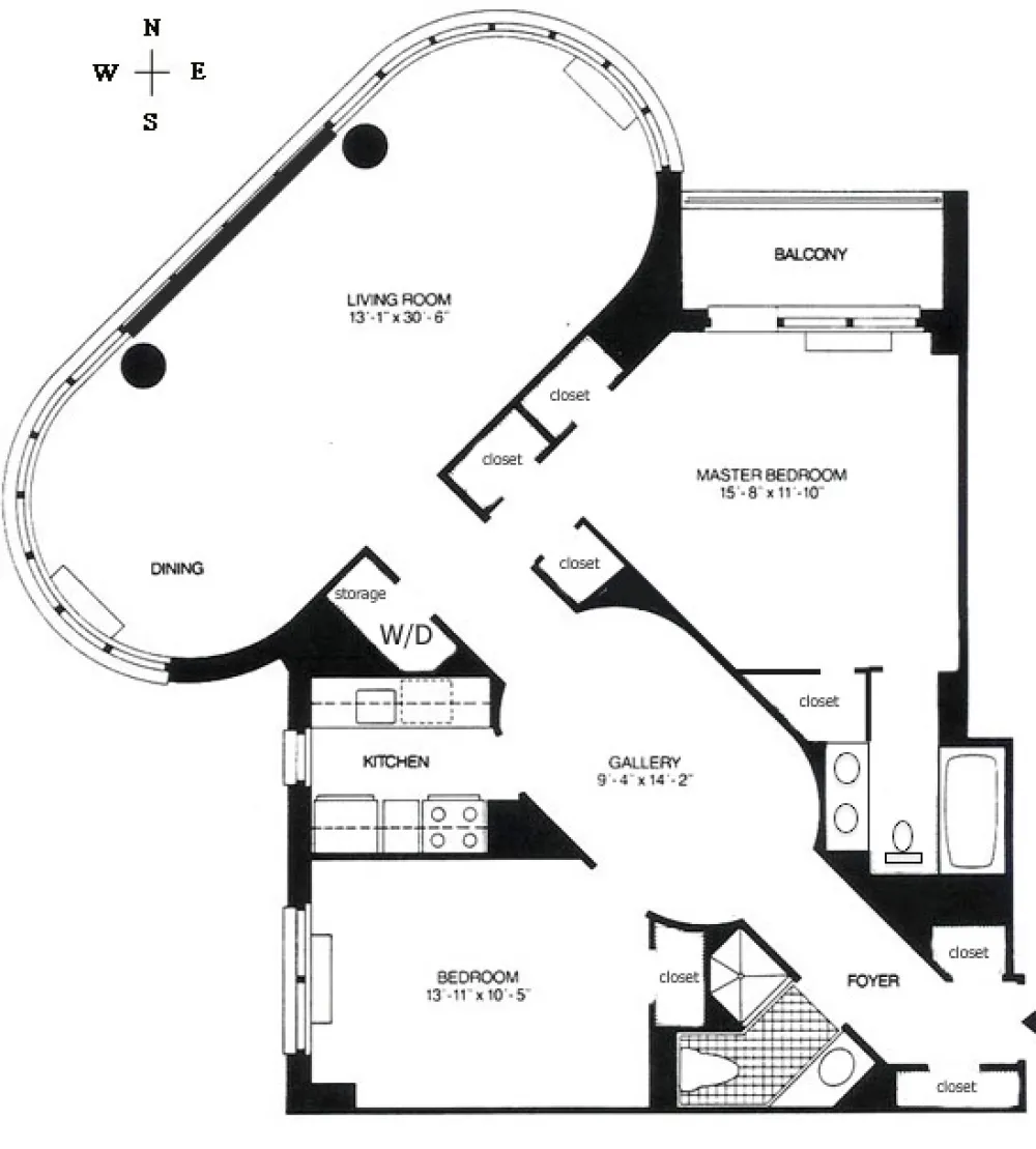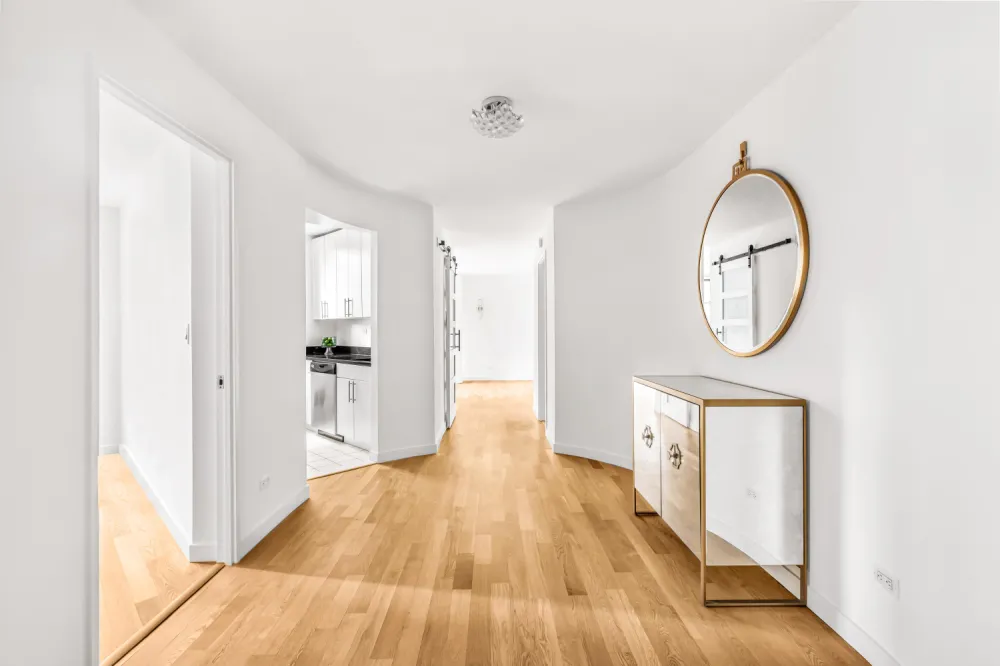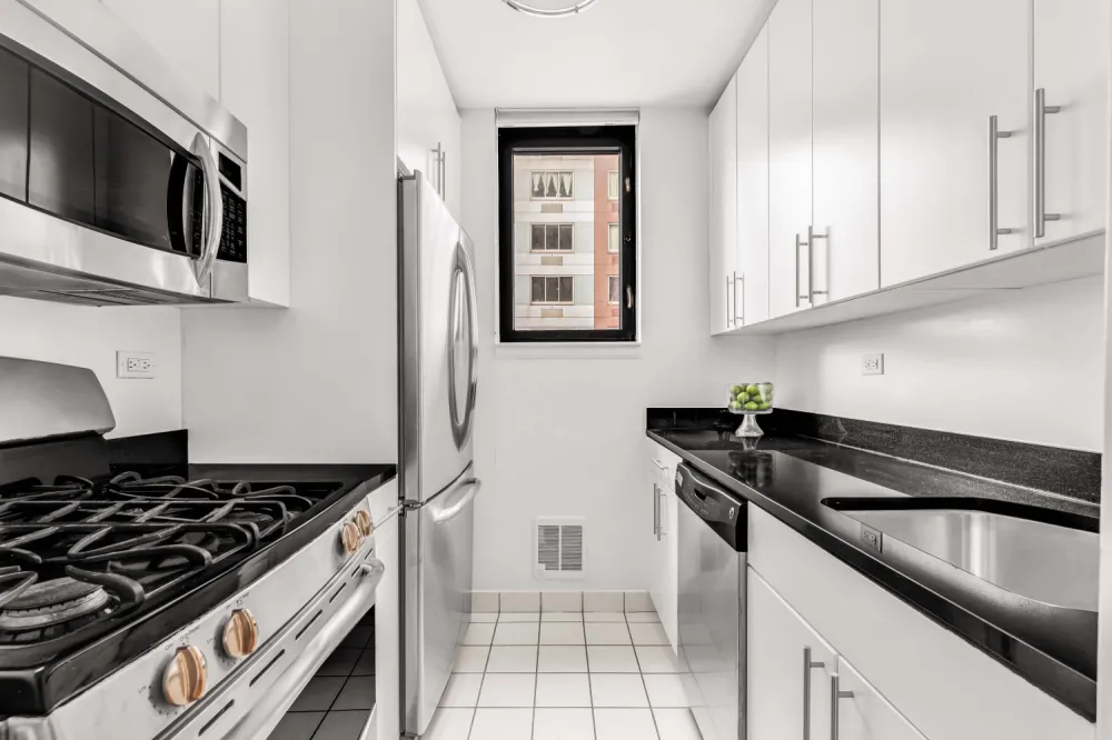 Upon entering, the beautiful light oak hardwood floor leads you through the generous gallery and into this stunning and spacious 2 bedroom, 2 bath apartment. Newly updated, this almost 1200 square foot home is filled with natural light that shines through the large bay windows that encompass each end of the living space and provides you with North, South, East, and West views of the city as well as The East River. The windowed kitchen is complete with stainless appliances and granite countertops. The primary bedroom has an en-suite bath and a 40 square foot private balcony which is the perfect place to enjoy your morning coffee. Customized closets, including a primary bedroom walk-in, are abundant. And as an added bonus, this home has a brand new Bosch washing machine and dryer. RE taxes listed is for a primary resident.