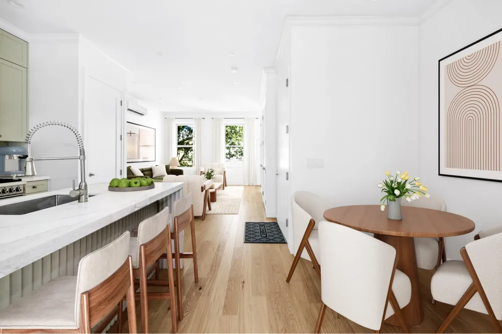 At the intersection of creativity and design, a new boutique condominium comes to life in the treasured neighborhood of Greenpoint. Originally built circa 1910, this charming clapboard home has gone through a complete overhaul. It is comprised of two 2-bedroom units and one 2-bedroom duplex with access to a sunny backyard and wood-cladded deck.