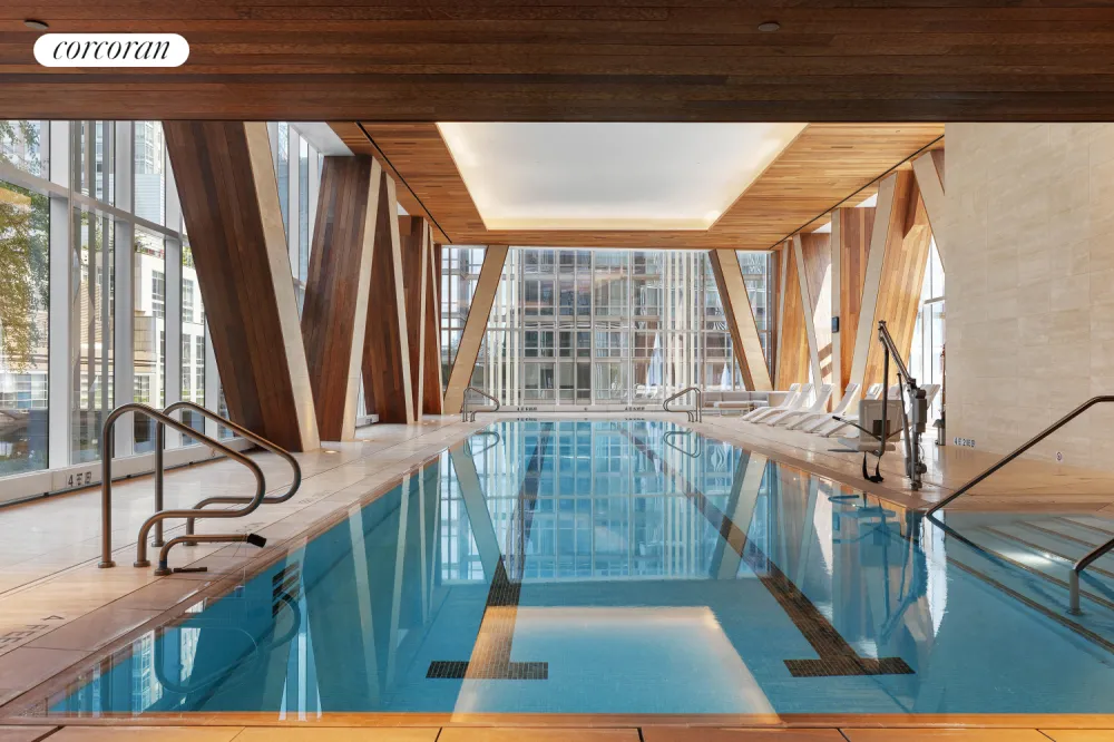As a resident of One West End, you'll have access to a range of resort-inspired amenities, such as a 75-foot swimming pool within a double-height cantilevered atrium, a private fitness center and spa, and a 12,000 square foot terrace with cabanas, lush green spaces, and areas for grilling and outdoor entertaining. Additional amenities include a living room with a fireplace, media, billiards, and game rooms, a kid's playroom overlooking the garden terrace, and a private dining room with a chef's demonstration kitchen.