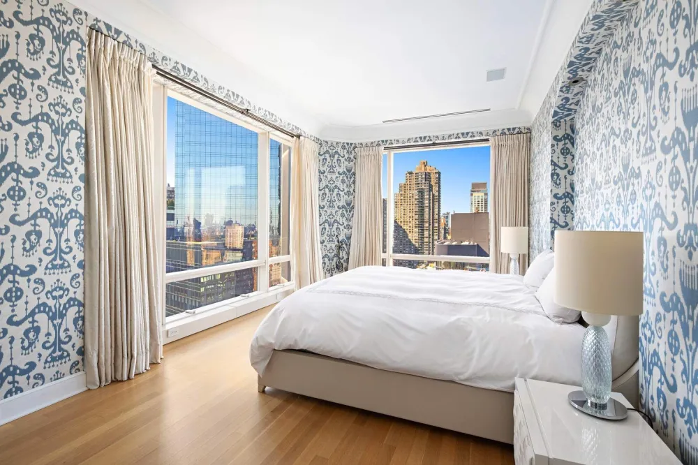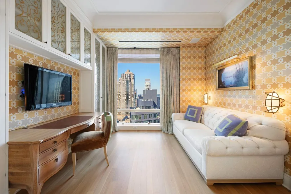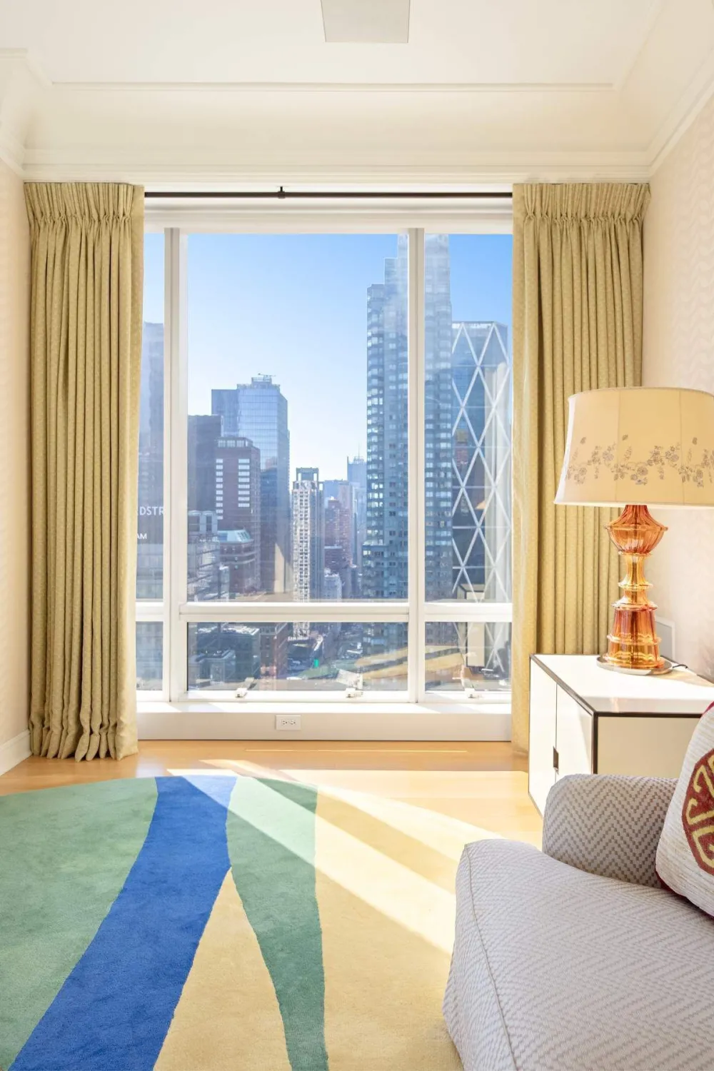 Spanning 2,165 square feet, the Robert Couturier designed three-bedroom apartment enjoys truly phenomenal views from the 34th floor and is a glorious haven above the city, gorgeously appointed in every way.