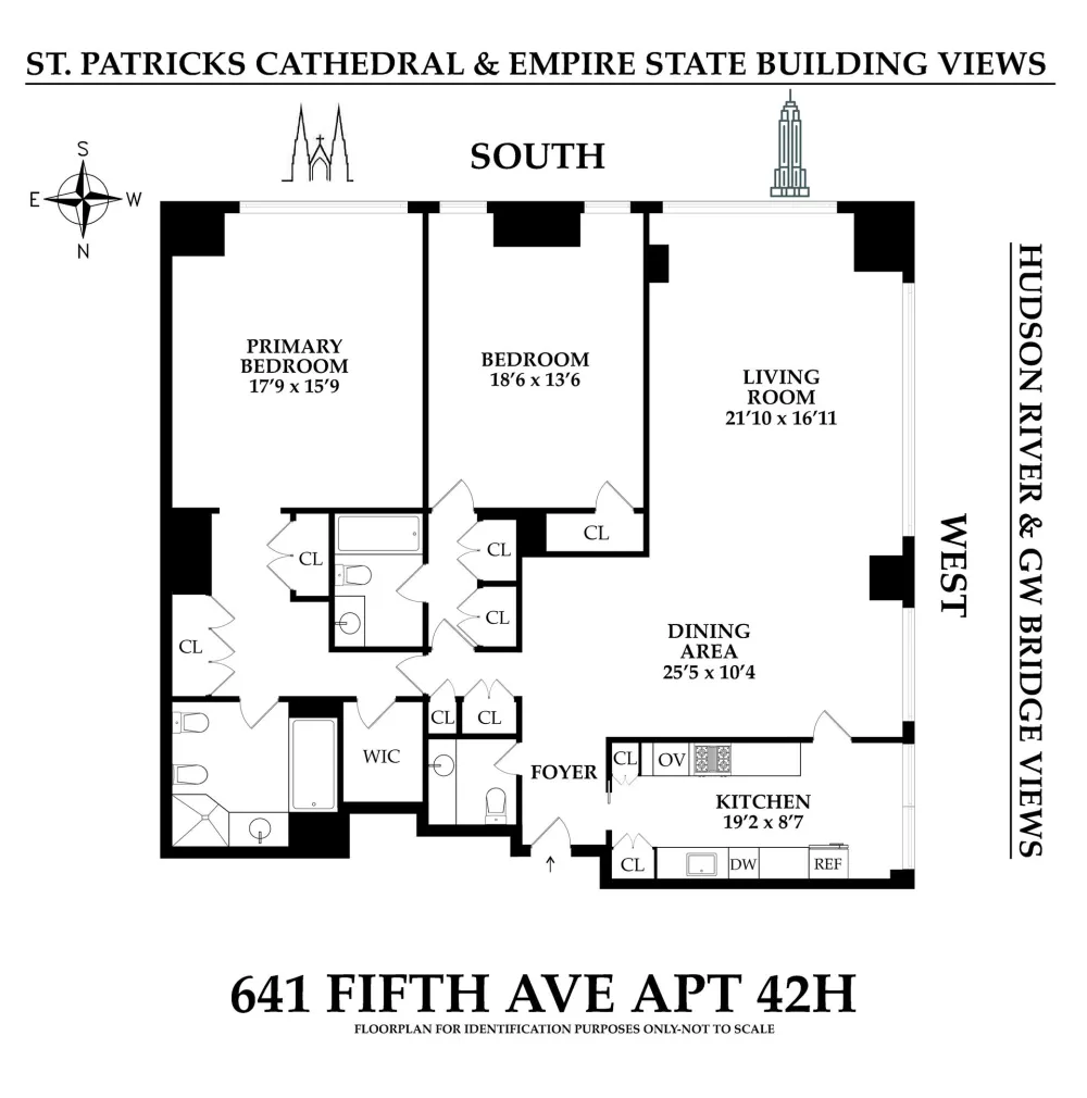 Apt. 42H with views of Saint Patrick's Cathedral and the Empire State Building, and West with views of the Hudson. Perched on the 42nd floor of the classic Olympic Tower and now define the world-renowned building's current magnificent flexible and creative residential option. Renovated, Apt. 42H features spacious living/dining room, kitchen with high end appliances -Gaganeau, Miele, and Subzero, lovely wood cabinetry, and stainless steel counters. The many closets with fitted storage space and large bedrooms with marble baths en suite contribute to a lifestyle so highly sought after - graceful, comfortable, and serene in an iconic building recognized globally as a residence chosen by princes, movie stars, industry leaders, and entrepreneur
