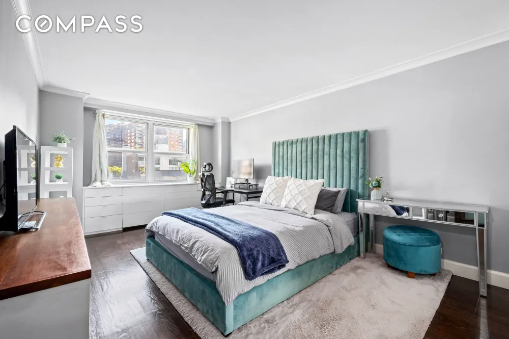 Apartment 8K greets you with open northern views up through Hudson Yards and the rooftops of the townhouse and tree-lined street.